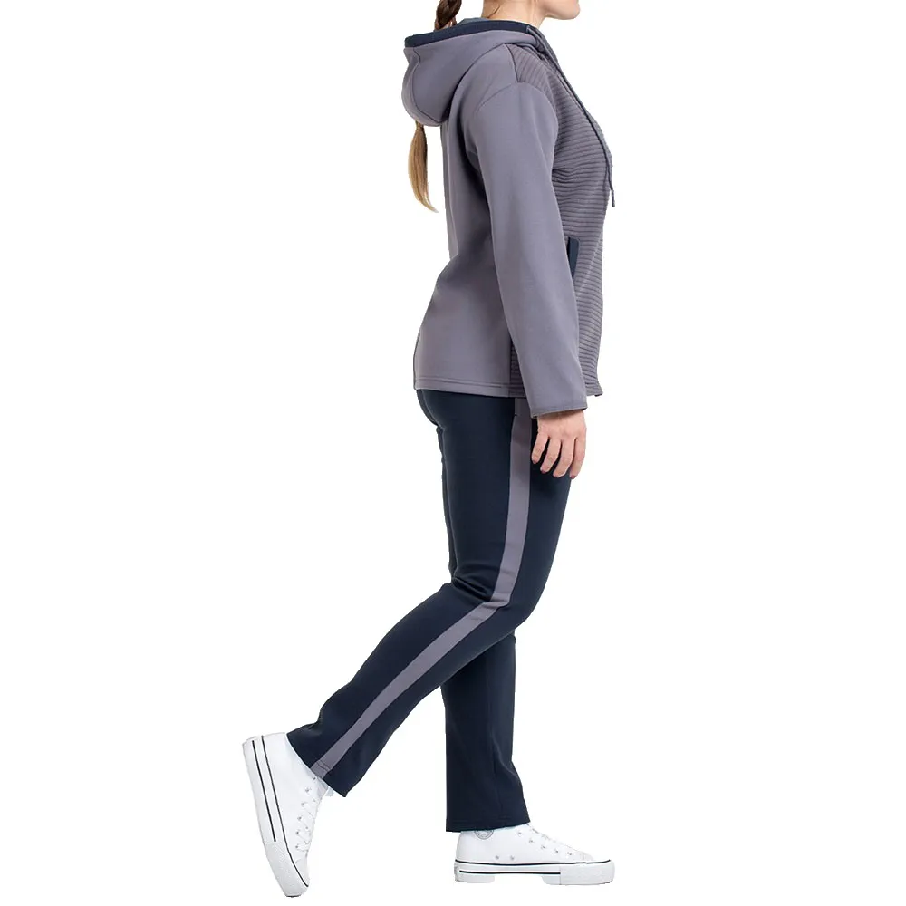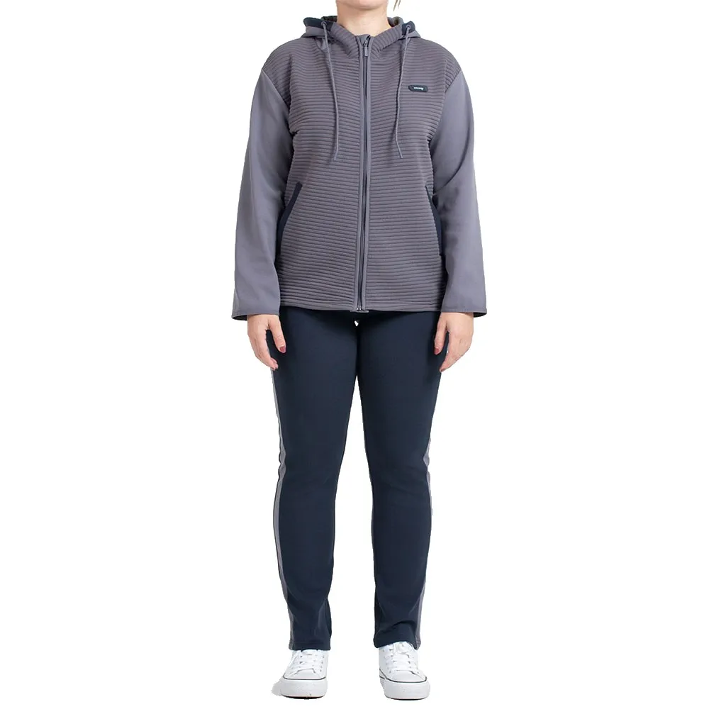 Het heeft een centrale ritssluiting, verstelbare capuchon, zakken met ritssluiting en manchetten afgewerkt met bies.