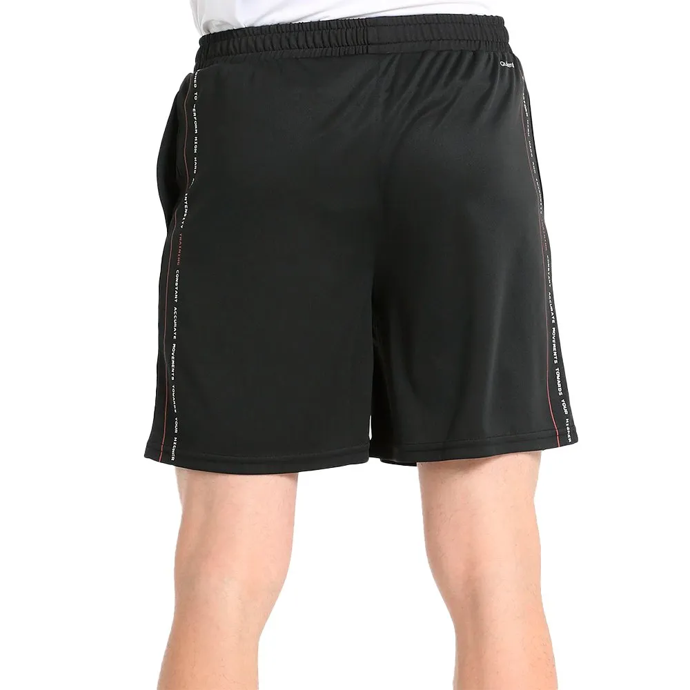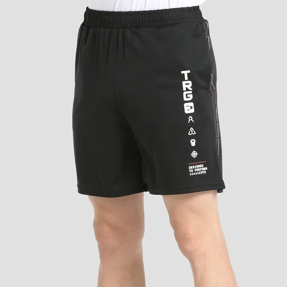 BERMUDA SHORTS UIT ONZE TRAININGSCOLLECTIE MET VERSTELBARE ELASTISCHE TAILLEBAND MET KORTE RIEMTJES, ZIJZAKKJES EN EEN LIJN-GRAFIEK.