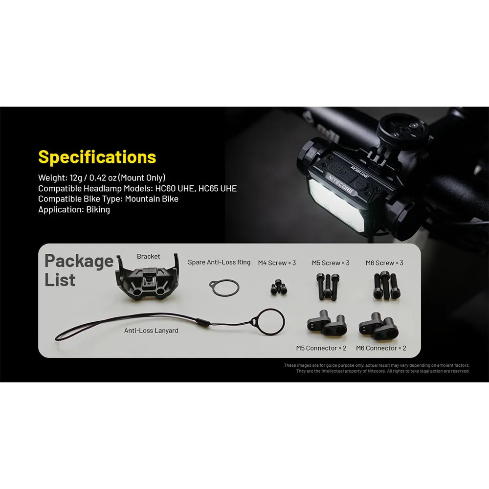 De BM06 is speciaal ontworpen voor het veilig bevestigen van de HC60 UHE en HC65 UHE hoofdlampen en biedt stabiele, hoge-lumen verlichting die in elke hoek kan worden versteld, waardoor hij ideaal is voor mountainbiken, nachtritten en ruig terrein.