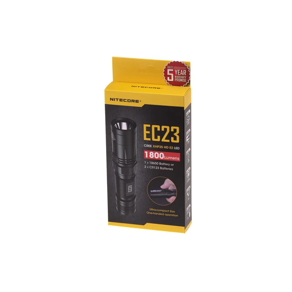 Deskundig vervaardigde EC23 Explorer, ontworpen door Nitecore, is een praktische, compacte, lichtgewicht oplaadbare zaklamp, ideaal voor dagelijks gebruik. Houdt u van buitenactiviteiten, bergwandelingen of tochten door het bos? Dat is geweldig! Dit apparaat is speciaal voor deze gebieden gemaakt. Krachtige output is een trefwoord dat een uitstekende zaklamp EC23 perfect beschrijft. Deze functionele lamp heeft de CREE XHP35 HD E2 en SMO reflector en gebruikt 1x 18600 of 2x CR123. De EC23 kan tot 1800 lumen uitstralen en bereikt een maximale bundelafstand van 255m. Het apparaat werkt wel 300 uur in ultralage modus.