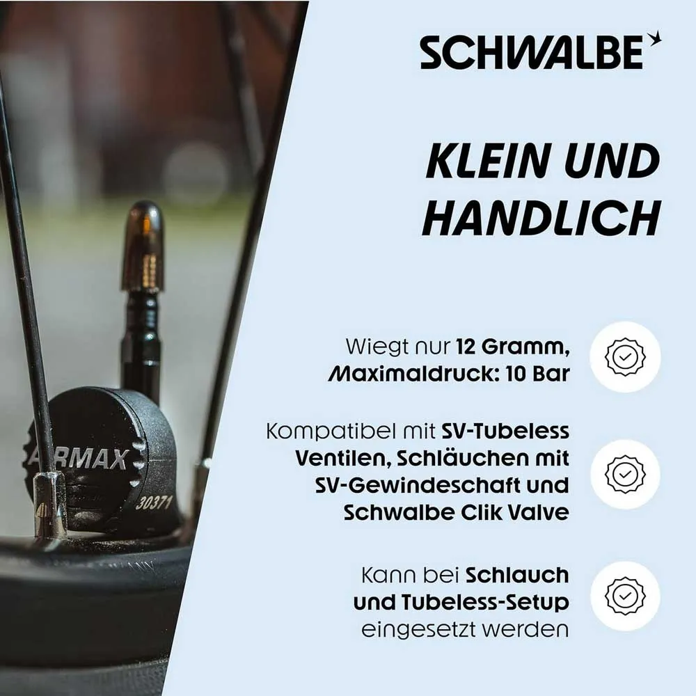 - Compatibel met SV tubeless ventielen, binnenbanden met SV schroefdraadventielen en Schwalbe Clik Valve