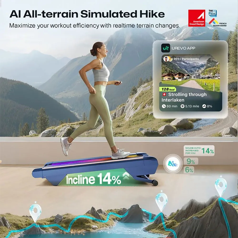 Het beschikt ook over Bluetooth-connectiviteit en een verbeterde Urevo-app met 4 trainingsmodi die gedetailleerde rapporten geeft over snelheid, afstand en calorieën.