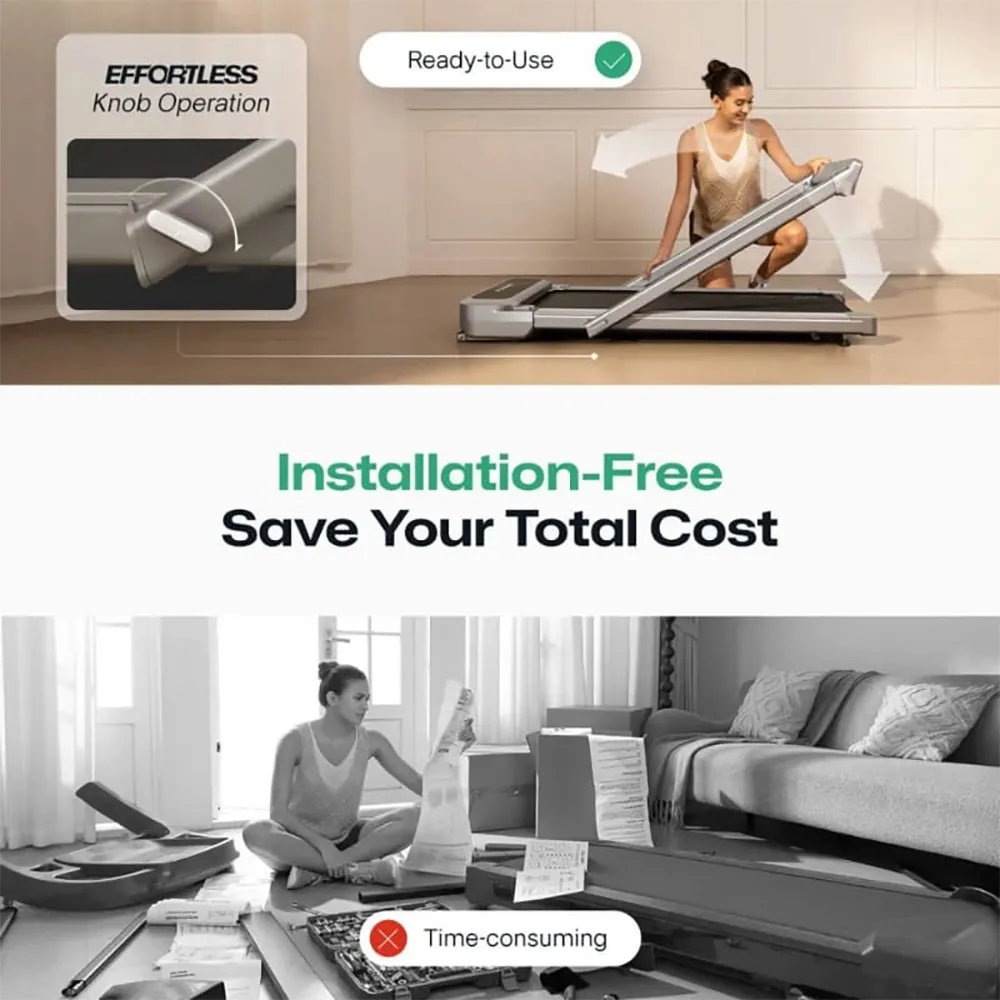 Een dubbel 3.0 HP borstelloos systeem houdt de band stevig tot 13.4 km/u met een geluidsniveau van slechts 45 dB, stil genoeg voor gedeelde appartementen.