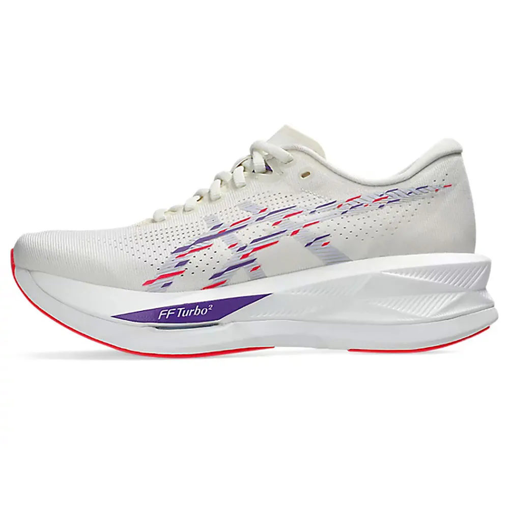 Slipp løs farten din i ASICS Sonicblast, bygget for tempoturer og daglig trening. Opplev en lett, spretten og responsiv løpsfølelse takket være en tolags mellomsåle med vår mest energiske FF Blast™ Max og banebrytende FF Turbo²™-demping. En integrert Astroplate™ samarbeider med skummet for å drive fremdriften din fremover, noe som skaper en ubestridelig raskere følelse under foten. En pustende overdel i konstruert mesh holder deg komfortabel, mens Asicsgrip™-yttersålen gir avansert grep for et trygt steg på veien