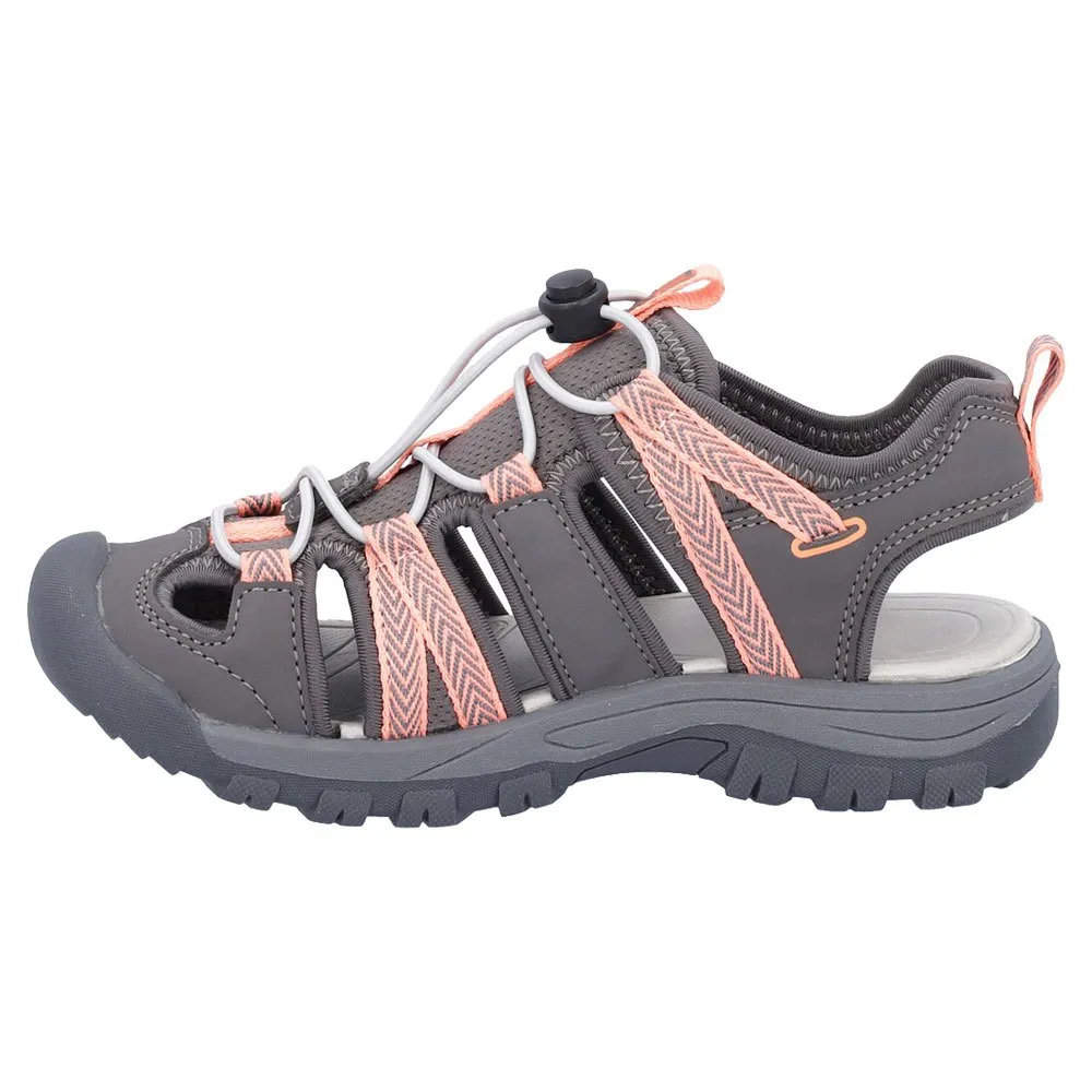 Slipp løs hennes indre utforsker med CMP Theseus-sandalene! Den ultimate utendørssandalen for jenter, den kombinerer sikkerheten til en lukket sko med den lette komforten til en sandal. Dens unike edderkoppkonstruksjon gir en sikker, stabil passform for enhver aktivitet. Med en hurtigtørkende fotseng, en TPR-såle med høyt grep for pålitelig feste, og et enkelt hurtigsnøresystem, er disse sandalene klare for ethvert eventyr – fra lekeplassen til stien