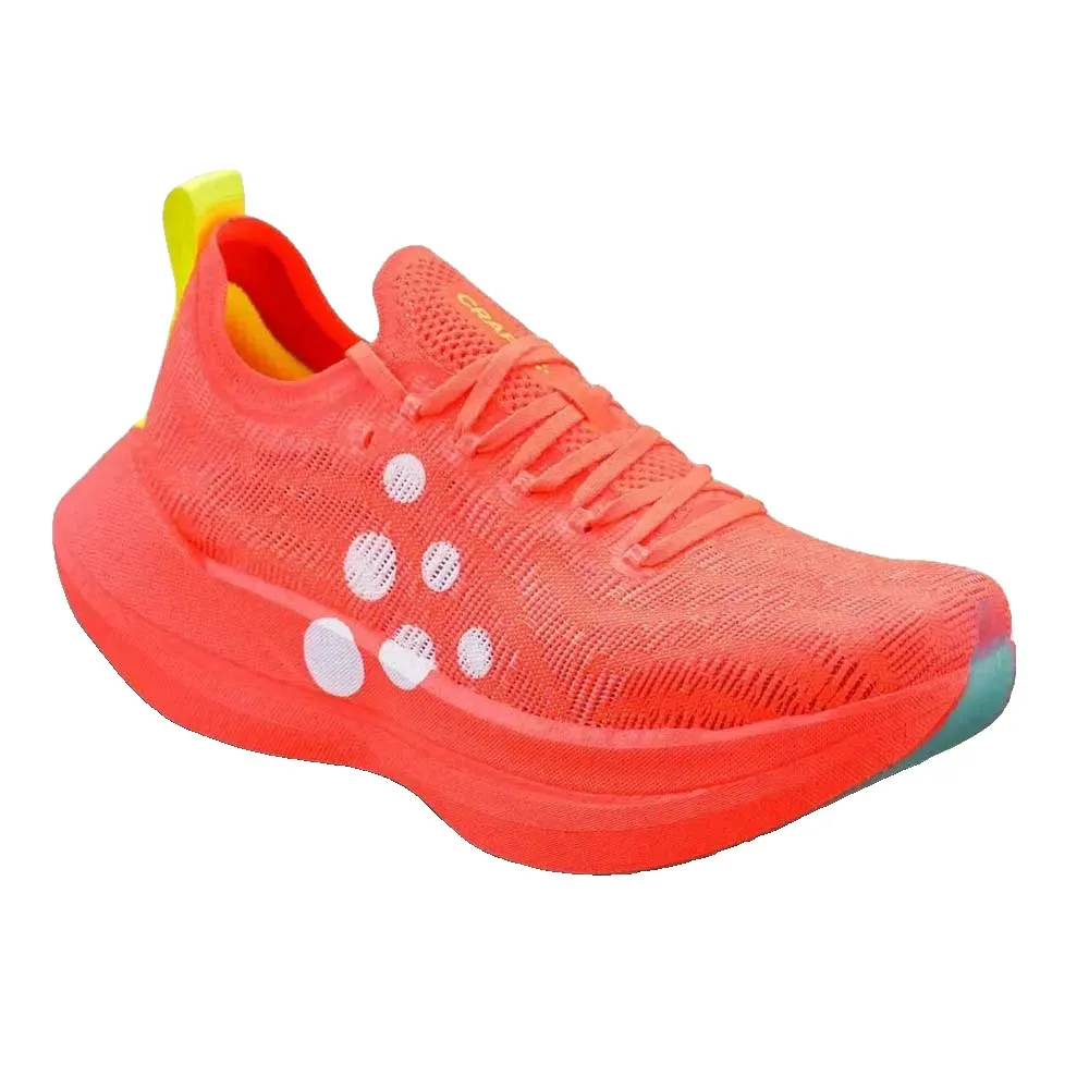 Kype Pro representerer toppen av CRAFTs utvalg for landeveisløping, og er konstruert for de som ønsker å flytte grenser og slå rekorder – og tilbyr en avansert blanding av fart, komfort og teknologi for den seriøse maratonløperen. Denne teknisk avanserte skoen i proffklassen er designet for toppløpere og kombinerer banebrytende teknologi med enestående effektivitet. Sentralt i designet er Xx Foam™ med Pebax™, en nitrogeninfundert innovasjon som tilbyr lett, slitesterk og høy-rebound demping. Skoen er forbedret med en avansert karbonfiberplate fra ARRIS, og gir lett styrke og justert stivhet for stabilitet ved høye hastigheter og forbedret fremdrift. Skoens fremtredende funksjon er dens unike delte hælkonstruksjon, som muliggjør uavhengig fjæring for overlegen retardasjon, stabil energioverføring gjennom ganglaget og maksimert fremdrift. Videre kommer Kype Pro med den nye Lightsole™-yttersålen, som er utviklet i samarbeid med Vittoria for enestående grep. I tillegg er overdelen laget av en lett og sterk AeroMesh-vev, som gir utmerket pusteevne og komfort. En tettsittende, formtilpasset design gir en kraftfull racingfølelse.