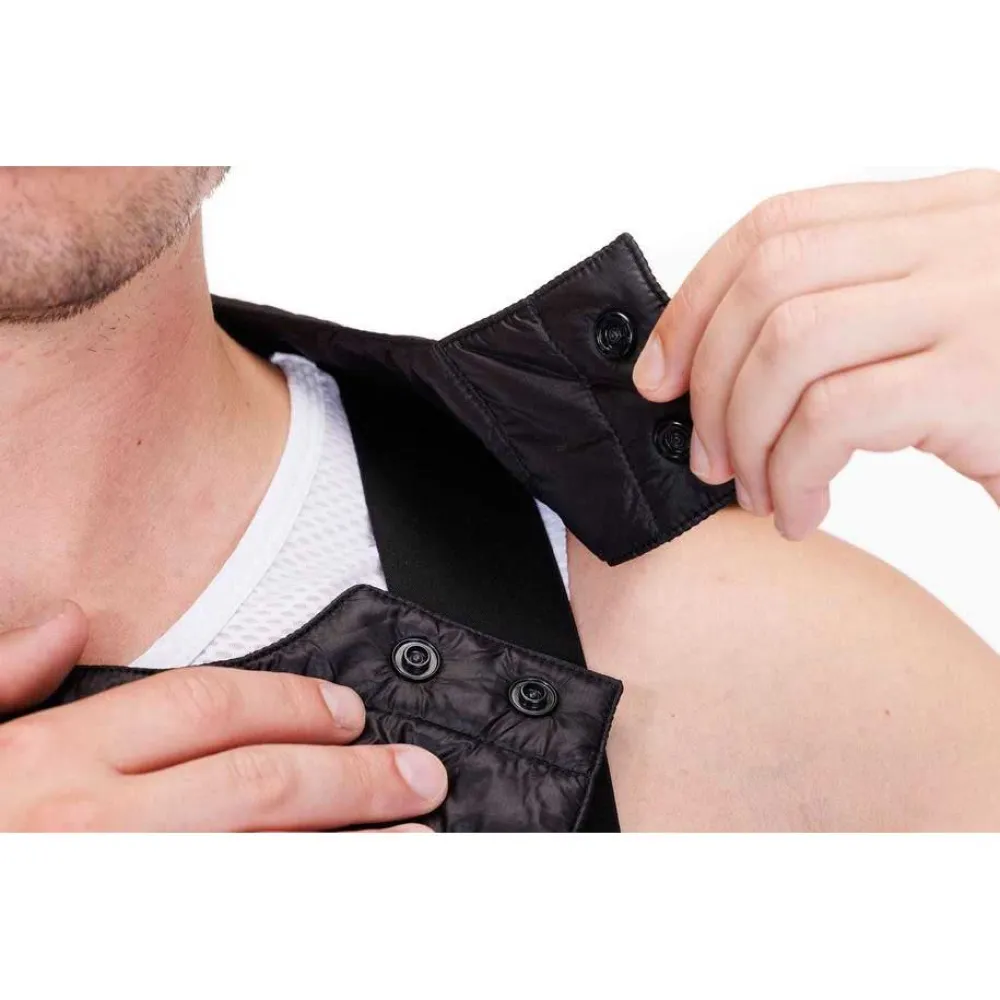 Før i tiden brukte proffene avispapir i trøyene for å holde den kalde vinden ute på utforkjøringer. Nå finnes CUBE Light Iso Layer. Bare fest den rundt halsen med trykknappen og glatt den ut under trøyen. Den er superlett, vindtett og kan pakkes ned i den integrerte minilommen.