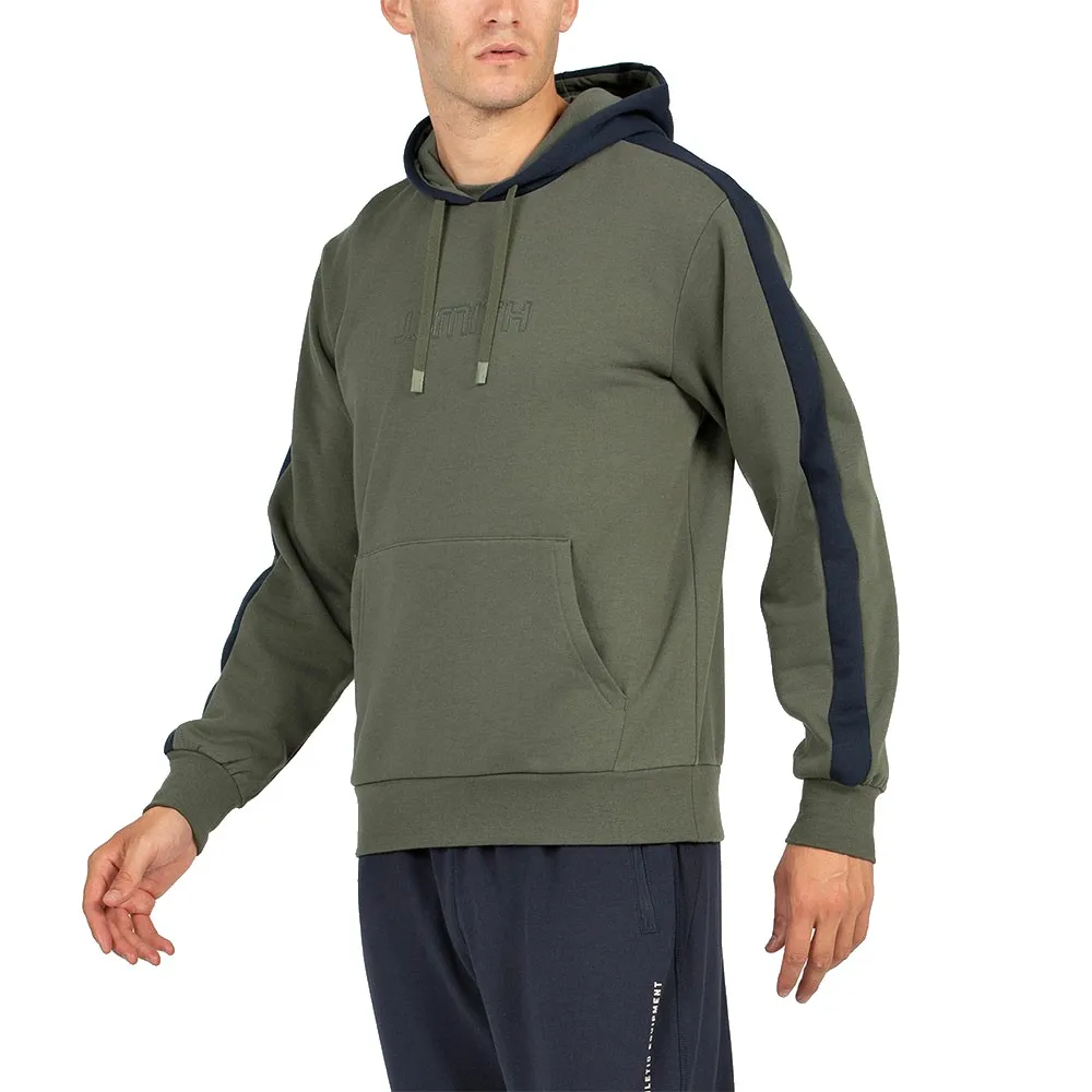 Denne lukkede hettegenseren har et klassisk pullover-design, som tilbyr en ren, strømlinjeformet silhuett som er både tidløs og enkel å ha på seg. Fraværet av glidelås forbedrer dens slanke profil og sikrer maksimal komfort når den brukes under en jakke. Dens fremtredende designelement er den kontrasterende hetten og matchende bånd, som skaper en dynamisk, sporty estetikk som fanger blikket. Denne gjennomtenkte fargeblokkeringen legger til et snev av moderne stil, og skiller den fra vanlige gensere.