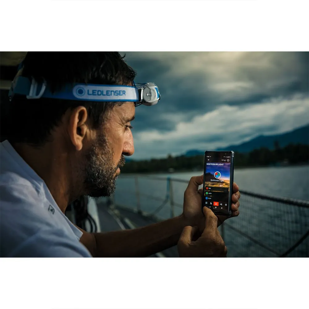Med appen vår kan du koble denne lampen til smarttelefonen din via Bluetooth. Så du kan kontrollere lampen din fra appen og konfigurere innstillinger. * Bluetooth®-ordmerket og logoene er registrerte varemerker som eies av Bluetooth SIG, Inc. og all bruk av slike merker av Ledlenser GmbH & Co. KG er under lisens.