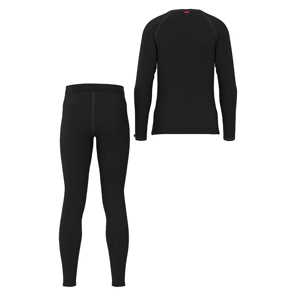 Isolerende, perfekt fukttransport, hurtigtørkende, elastisk, lukthemmende, flate sømmer, lange ermer, rund hals, raglanstil, lange bukser med myk elastisk strikk i livet.