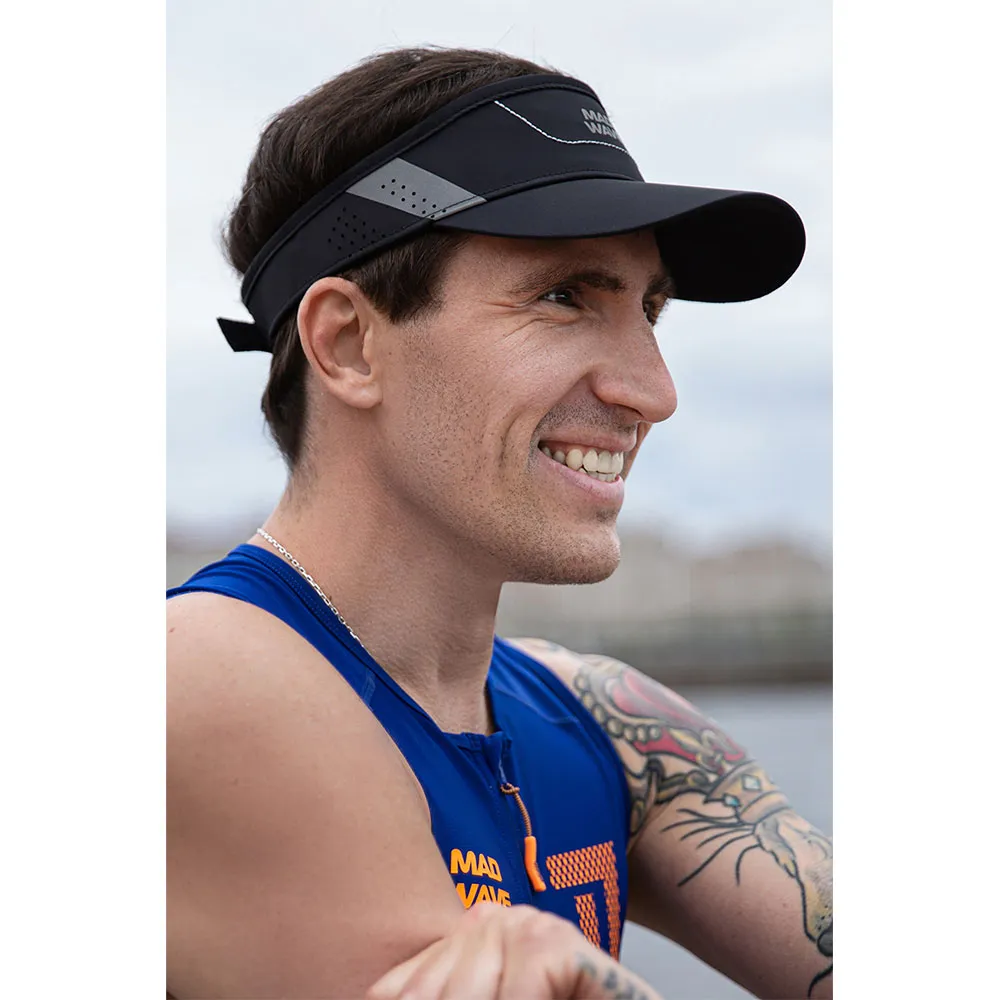 VISOR for løping beskytter øynene dine mot sterkt sollys, vind og regn. Et must for løping og sport i varmt vær. Det indre fôret fjerner fuktighet og gir komfort. Passformen kan enkelt justeres med borrelåsremmen. Reflekterende elementer sørger for at du er synlig selv i dårlige lysforhold.
