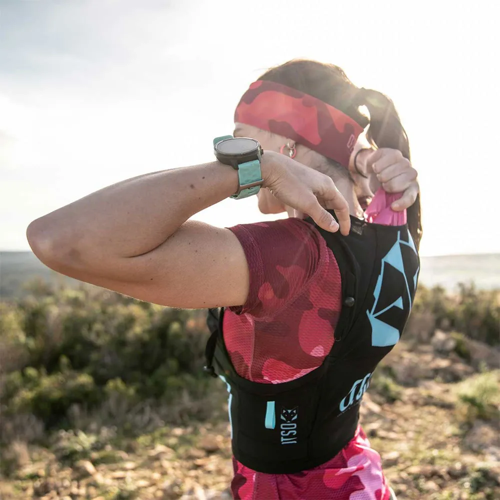 Med seks frontlommer som er ideelle for ernæring og hydrering (passer opptil fire 500 ml flasker uten at munnstykket kommer ut).
