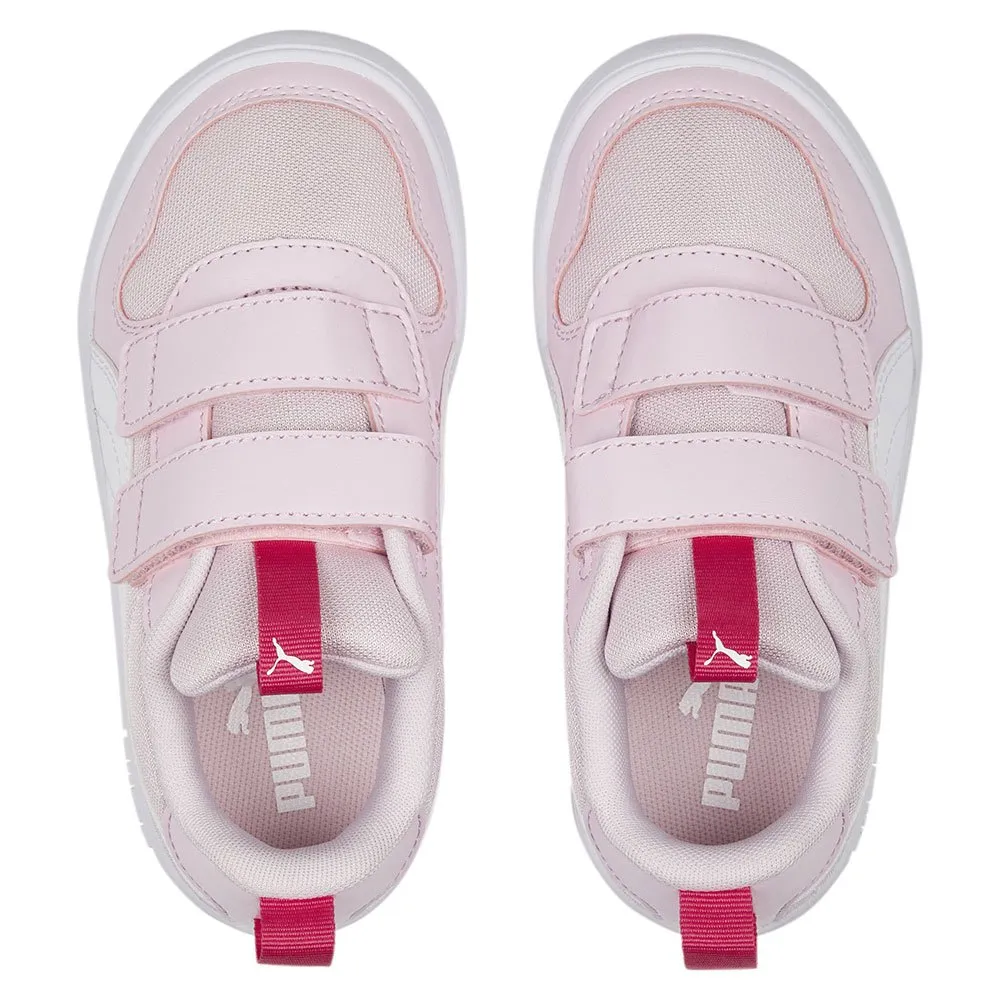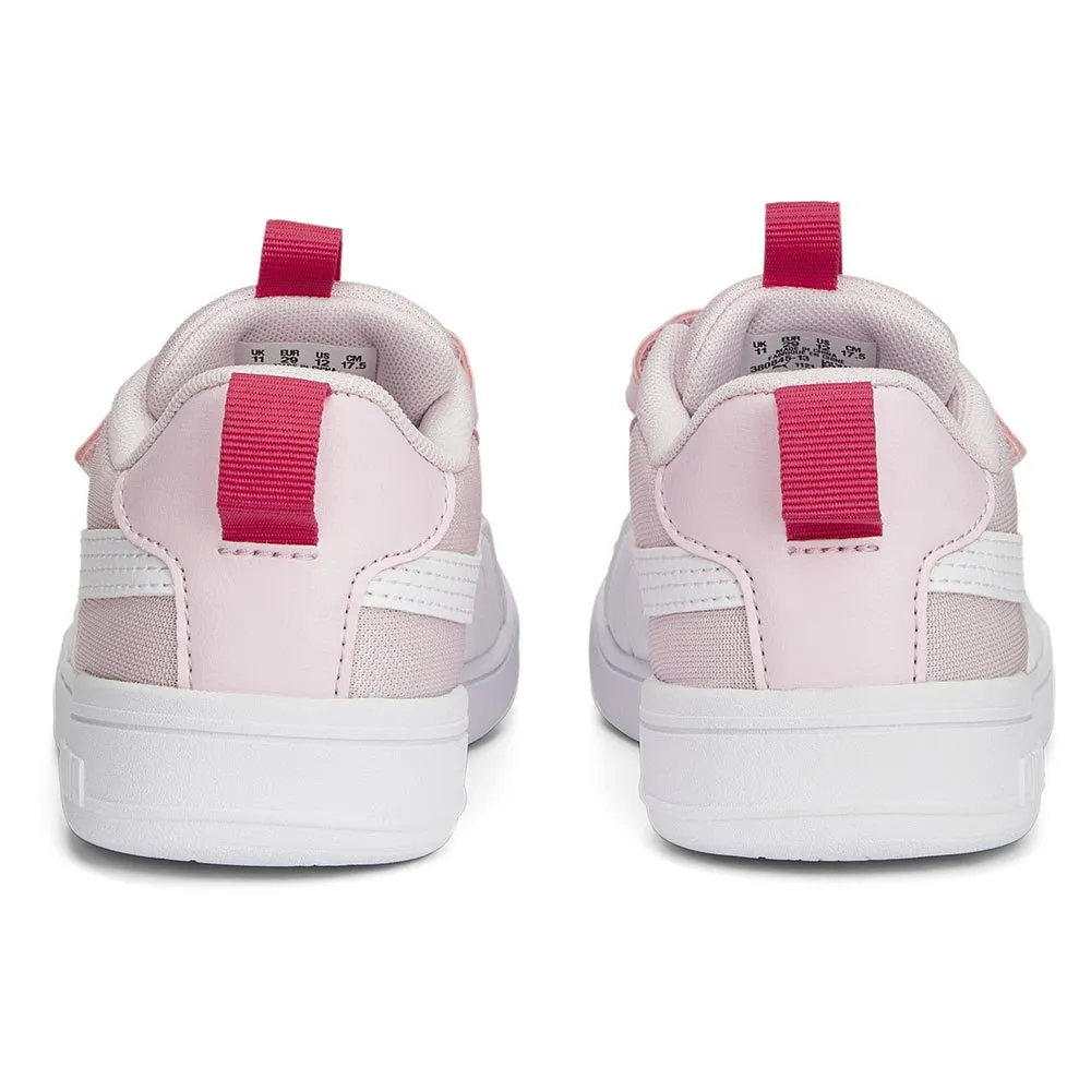Trygge for små føtter, Multiflex Mesh V Trainers er barneinspirerte og street chic. Med en pustende mesh-overdel, dristig PUMA-merking, en borrelåslukking og løkker ved hælen og pløsen for enkel av/på, forbedret passform og vrist og en slitesterk yttersåle i gummi for overlegen trekkraft, vil den lille føle seg kjølig mens cruising i disse klassiske sparkene.