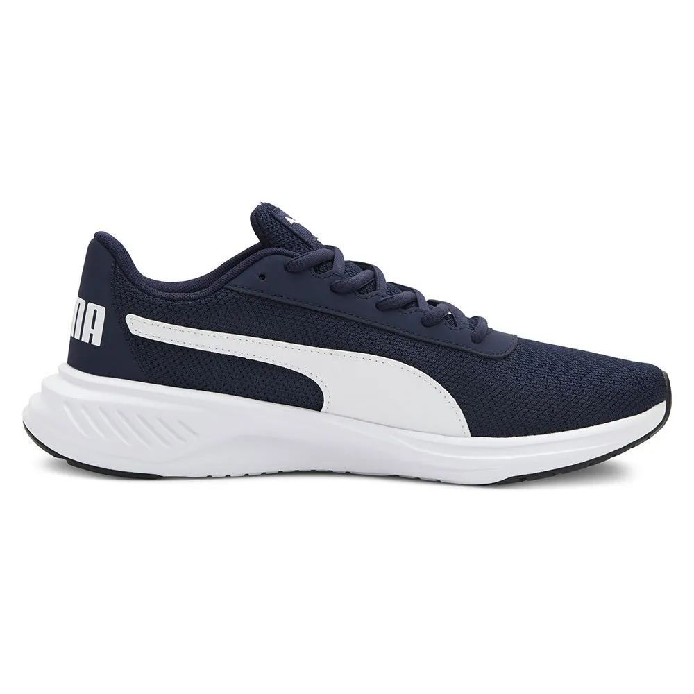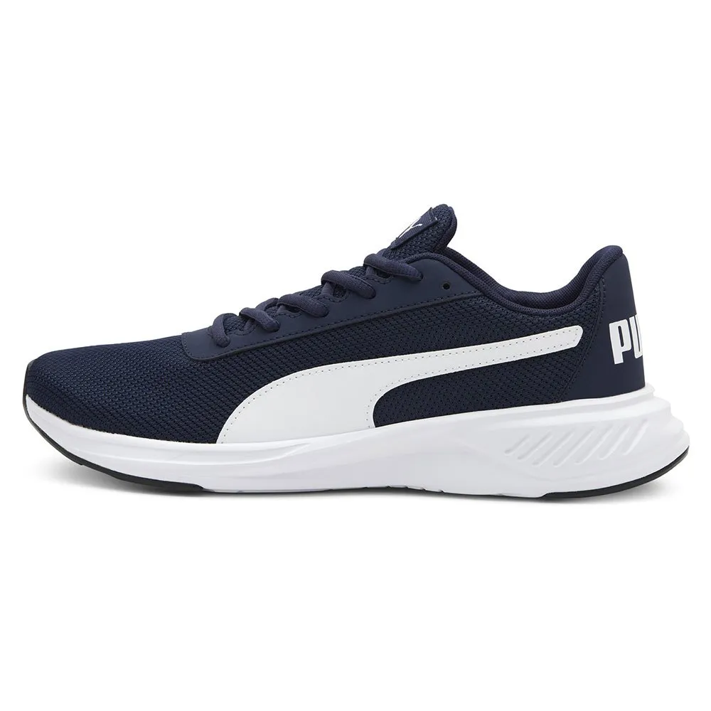 Når det gjelder stil, har disse joggeskoene det klassiske PUMA-logoet på sidene, noe som gir dem et tidløst og gjenkjennelig utseende. Den marineblå fargen gir et preg av raffinement og allsidighet, noe som gjør dem enkle å kombinere med forskjellige antrekk.