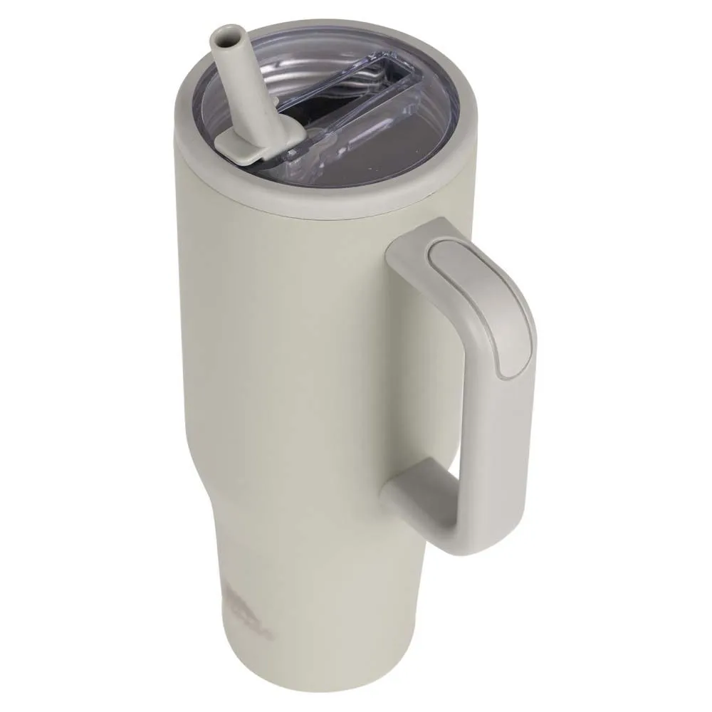 Med håndtak og lokk med oppfellbart sugerør: Konstruert for et liv i bevegelse. Det solide, ergonomiske håndtaket gir et komfortabelt og sikkert grep, noe som gjør det enkelt å bære den store koppen med selvtillit. Det intelligent designede lokket har et praktisk oppfellbart sugerør, som muliggjør uanstrengt, enhånds nipping uten å måtte skru av en topp. Dette gjør den til et utrolig trygt og praktisk valg for å drikke mens du kjører, jobber ved skrivebordet ditt eller går. Det sikre lokket bidrar også til å minimere sprut og søl, og holder deg og omgivelsene dine rene og tørre TRESPASS Flip termokoppen er mer enn bare en beholder; den er en essensiell del av ditt daglige utstyr. Dens elegante design passer sømløst inn i ethvert miljø, fra den robuste naturen til et profesjonelt kontormiljø. Ved å velge denne gjenbrukbare koppen, tar du også et bærekraftig valg, og reduserer din avhengighet av engangs plastflasker og papirkopper. Gjør hydrering til en uanstrengt og hyggelig del av dagen din med denne førsteklasses termokoppen med høy kapasitet fra TRESPASS