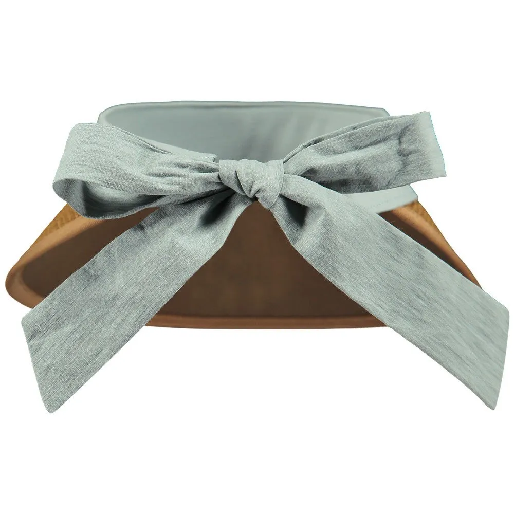 Ten daszek jest wykonany z mieszanki bawełny i papieru i wykończony regulowaną kokardką z tyłu.