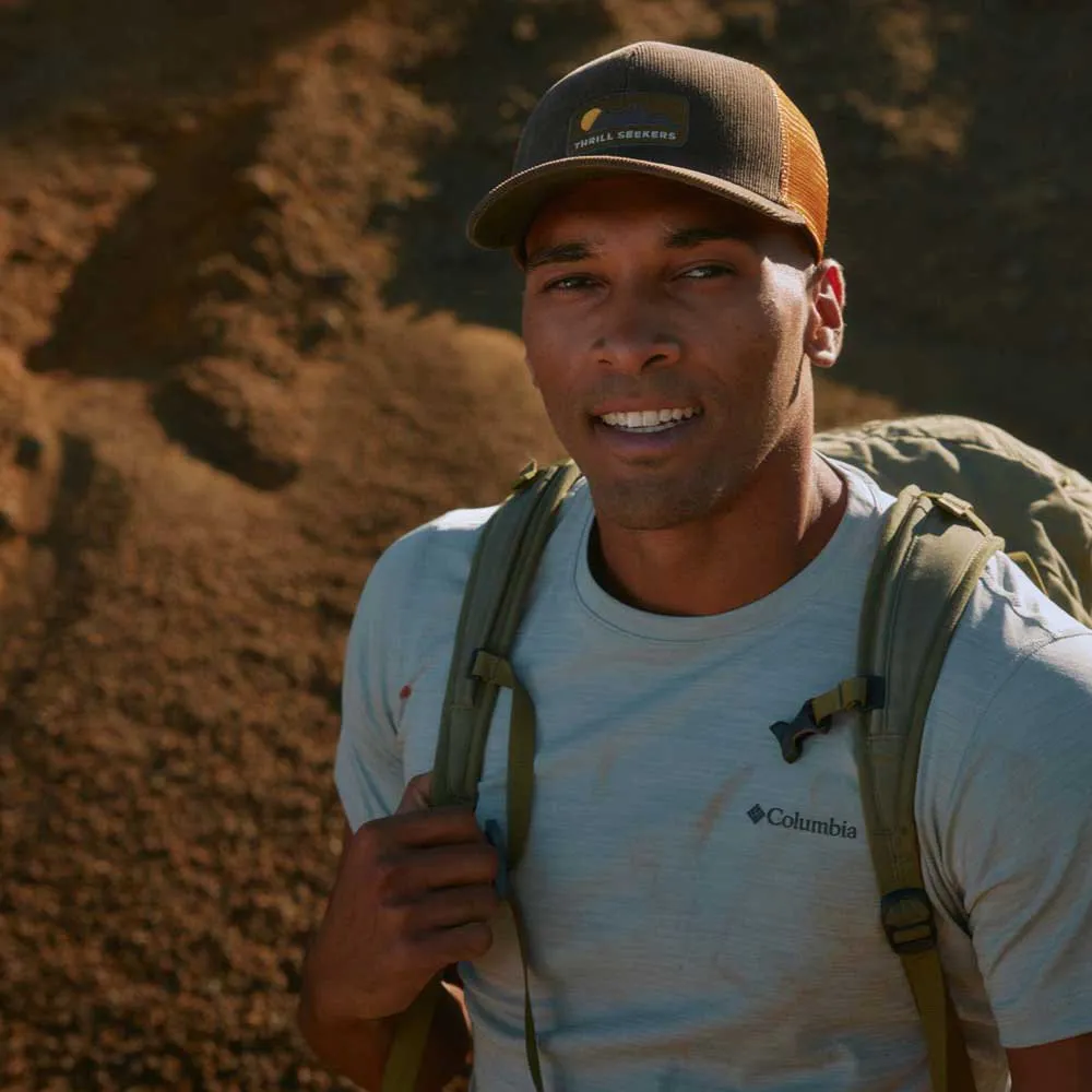 Nasz Explore trucker cap to ulepszona wersja klasycznej czapki. Tył z siatki i regulowany zapięcie zapewniają komfort przez cały dzień, a odprowadzająca wilgoć opaska potowa sprawia, że pozostajesz suchy podczas długich przygód.