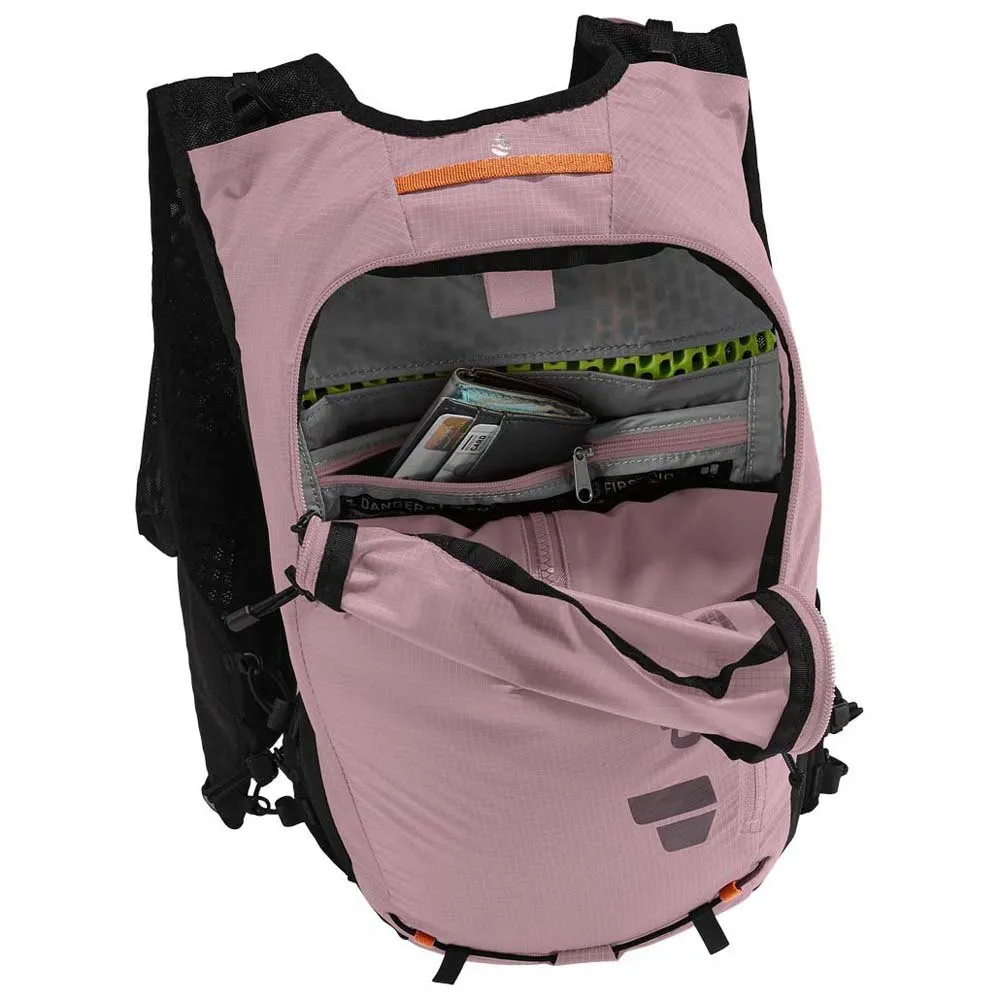 Niezwykle lekki i super wygodny: szerokie, ergonomiczne ramiączka w stylu kamizelki z elastycznym systemem kompresji, dwa regulowane paski piersiowe i miękki materiał z tyłu tworzą dopasowanie przypominające ubranie. Wewnętrzna kieszeń z elastycznej siatki i boczne paski kompresyjne pomagają wyeliminować kołysanie się ładunku bez względu na to, jak trudny jest teren. Kieszeń w kaburze z przodu jednego paska na ramię umożliwia szybki i łatwy dostęp do składanych kijków trekkingowych. I jest miejsce na miękkie butelki i GPS w kieszeniach paska na ramię. Tkanina na korpus jest wykonana w 100% z materiałów pochodzących z recyklingu i posiada certyfikat Bluesign®.