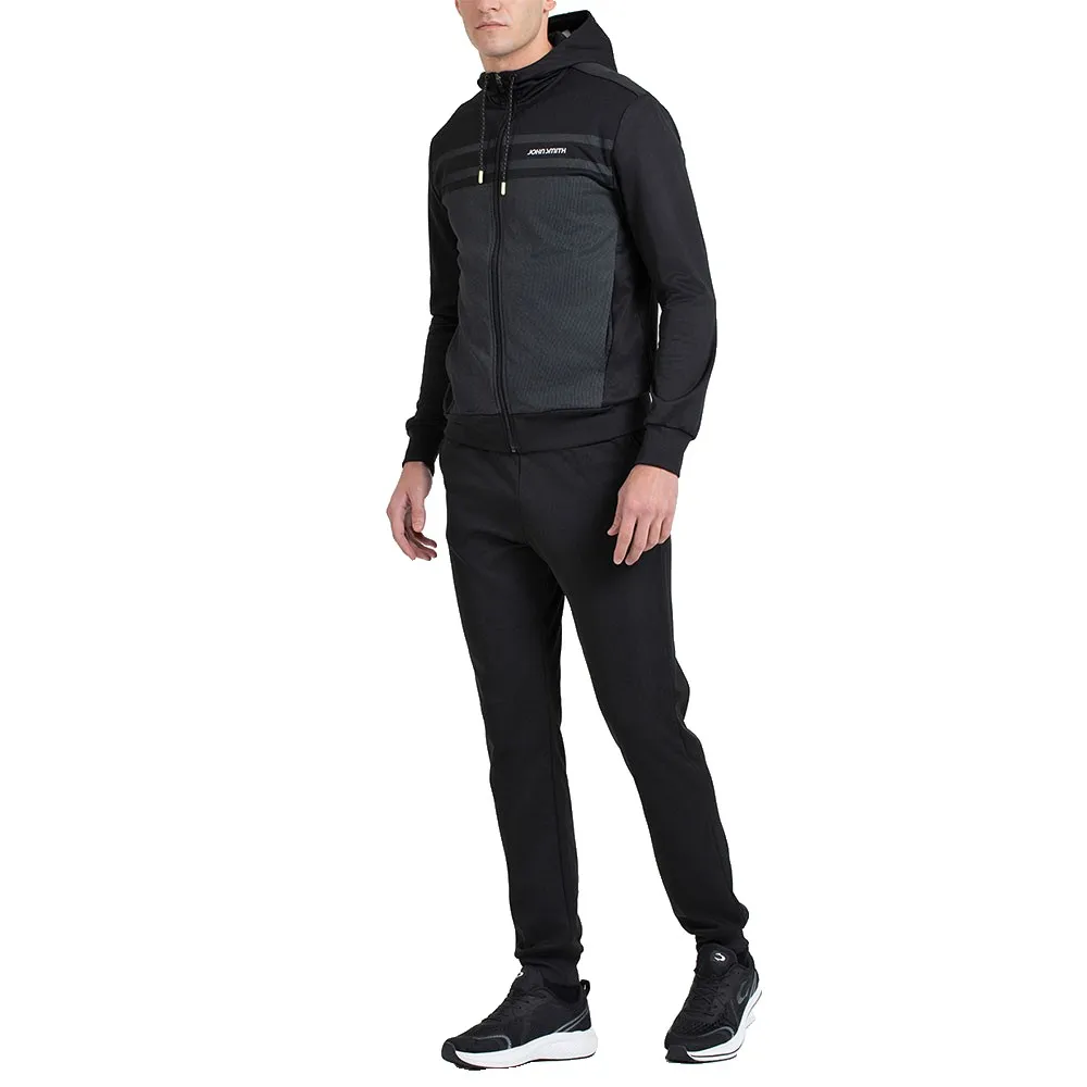 Centralnym elementem tego zestawu jest wszechstronna kurtka, wyposażona w zamek błyskawiczny na całej długości, który umożliwia łatwe warstwowanie i indywidualną kontrolę temperatury. Niezależnie od tego, czy nosisz ją w pełni zapiętą, aby uzyskać elegancki, sportowy profil, czy rozpiętą dla bardziej swobodnego nastroju, doskonale dopasowuje się do Twoich potrzeb. Zintegrowany kaptur zapewnia dodatkową warstwę ochrony przed żywiołami i dodaje odrobinę miejskiego stylu do Twojego stroju. Kurtka odważnie prezentuje efektowny geometryczny nadruk z przodu, wyróżniając Cię z tłumu swoim nowoczesnym i energetycznym designem. Funkcjonalność jest kluczowa, dzięki bezpiecznym kieszeniom na zamek błyskawiczny, idealnym do przechowywania telefonu, kluczy i portfela, podczas gdy kultowe logo firmowe na piersi symbolizuje autentyczną jakość i dziedzictwo marki John Smith.