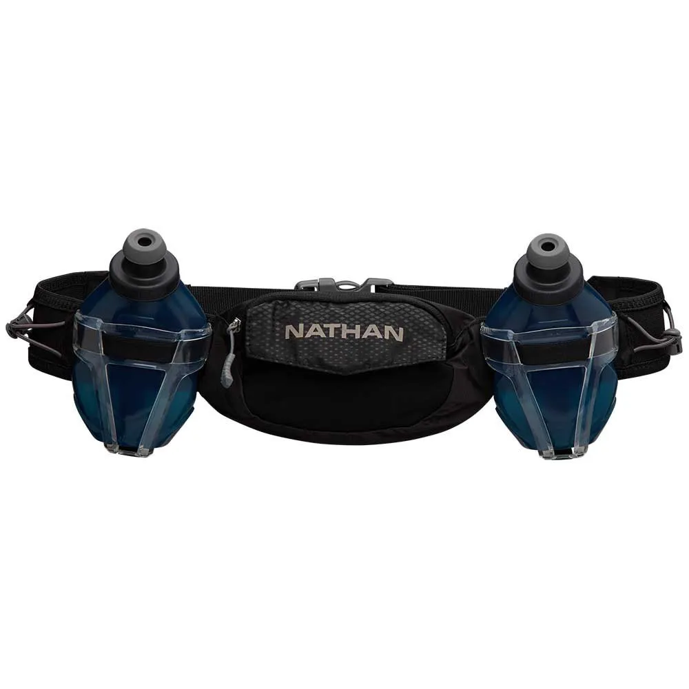 Nasz najlepiej sprzedający się, w pełni regulowany, bezodbijający się pas do nawadniania na dwie butelki ma teraz nową grafikę oraz przeprojektowane butelki, kabury i kieszeń do przechowywania dla wygody.