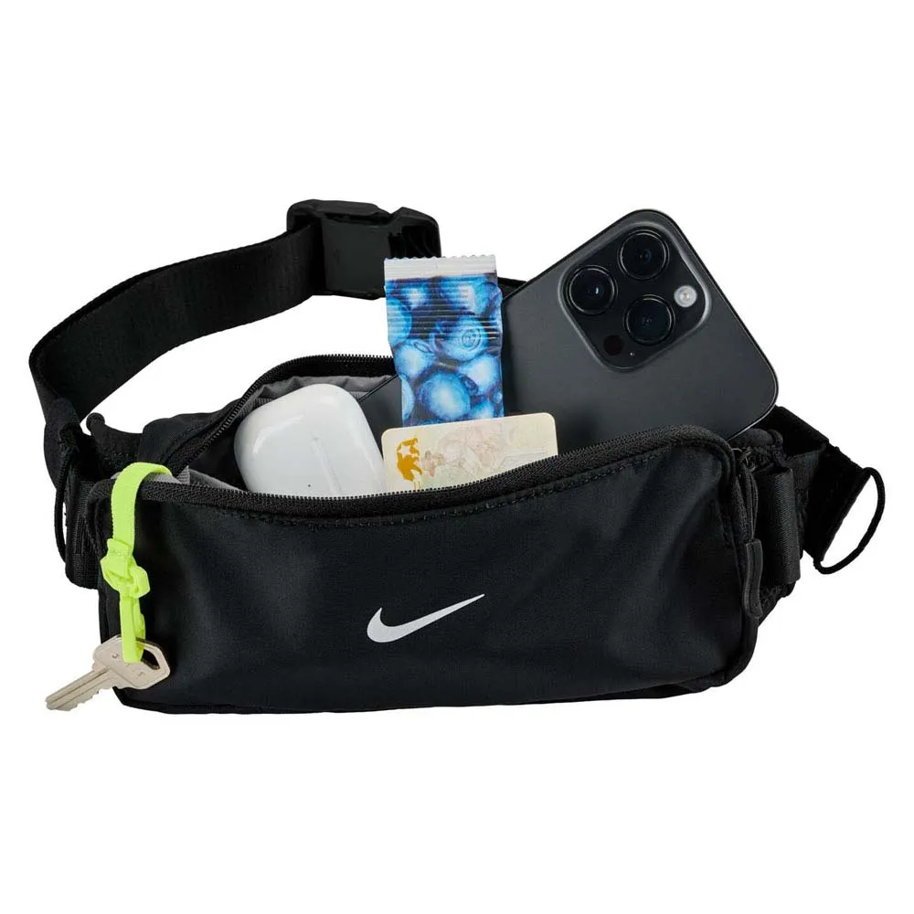 Wewnętrzna kieszeń wsuwana pomieści większość telefonów, Pomieści Twoje niezbędne rzeczy, dzięki czemu możesz skupić się na biegu, Regulowany pas zapewnia wygodne dopasowanie i pomaga zmniejszyć wstrząsy, Odblaskowe logo Nike Swoosh z przodu, Zawiera haczyk na klucze, aby mieć je blisko i nie zaprzątać sobie nimi głowy.