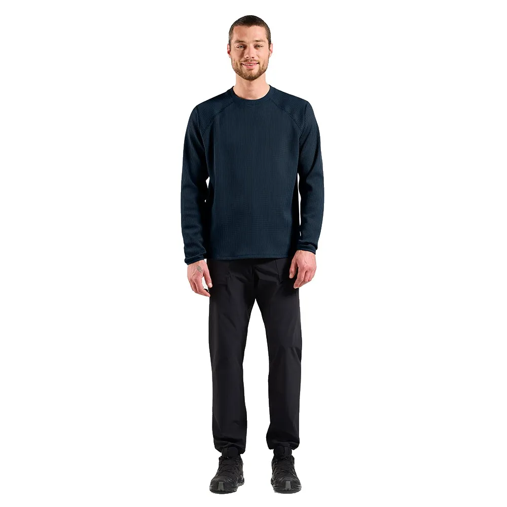 Odlo na nowo wynalazło swoją uwielbianą tkaninę „Cubic”, aby stworzyć multisportową warstwę środkową Cubic z okrągłym dekoltem – niezwykle lekką i szybkoschnącą bluzę.