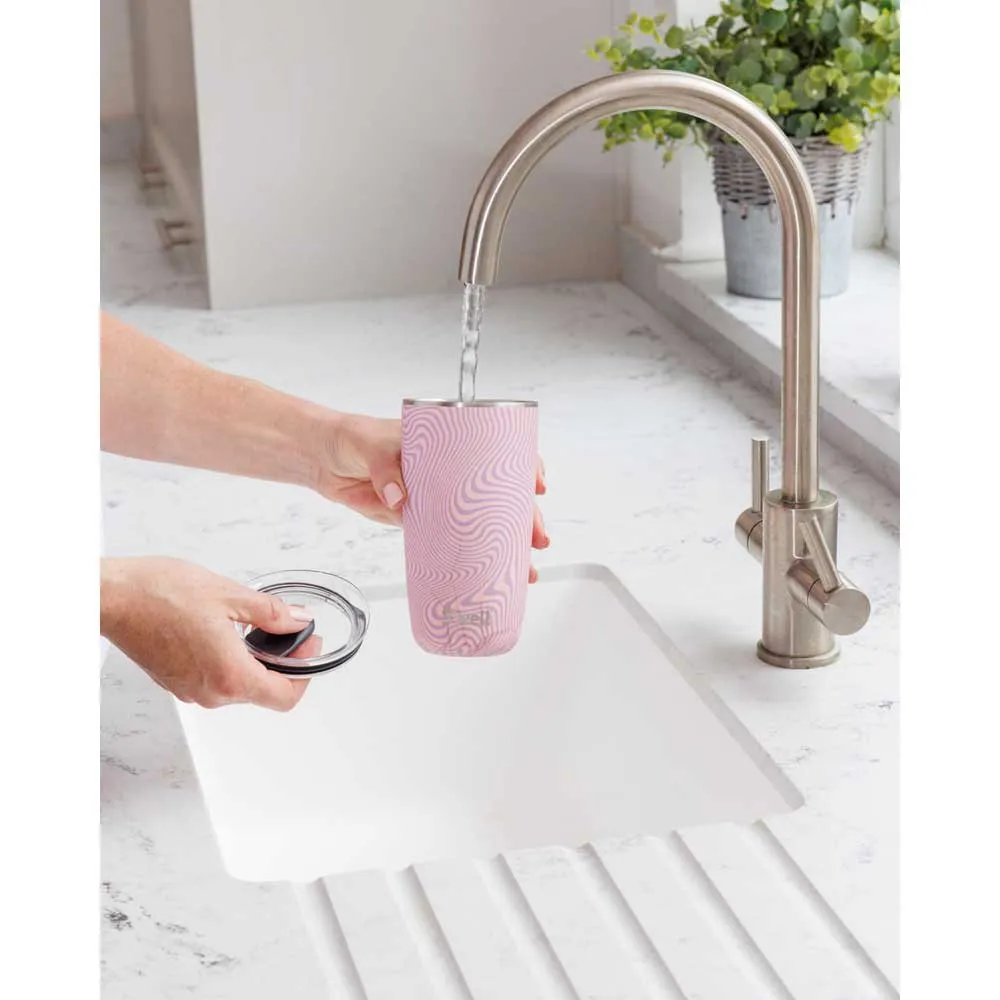 Wyglądająca jak sen i fantazja seria S´well Lavender Swirl łączy w sobie delikatne odcienie różu z subtelnym, wirującym wzorem lawendy. Kubek Lavender Swirl wykonany jest w technologii Therma-S’well® i ze stali nierdzewnej 18/8, a jego konstrukcja z podwójną izolacją próżniową pozwala utrzymać ciepło napojów do 4 godzin, a zimno do 12 godzin. Kubek ma szerokie usta i gruby rant, dzięki czemu można z niego łatwo pić, z kostkami lodu lub bez. Posiada on zewnętrzną powierzchnię wolną od kondensacji, dzięki czemu nie poci się w dłoniach podczas podróży. Kubek o pojemności 530 ml pomieści Twój ulubiony gorący napój lub szklankę herbaty z lodem, gdy potrzebujesz orzeźwiającego napoju gaszącego pragnienie. Ten kubek z podwójną izolacją posiada również przesuwny otwór, dzięki czemu można z niego łatwo pić, dzięki czemu jest idealny do użytku w domu lub w pracy. Zalecamy przechowywanie go w pozycji pionowej i nie przepełnianie, ponieważ nie jest on szczelny. Zaprojektowany tak, aby dłużej utrzymywać napoje gorące lub zimne. Odkryj pozostałą część serii S’well, w której znajdziesz stylowe butelki z wodą z podwójną izolacją, kubki podróżne, termosy na żywność i wiele, wiele więcej.