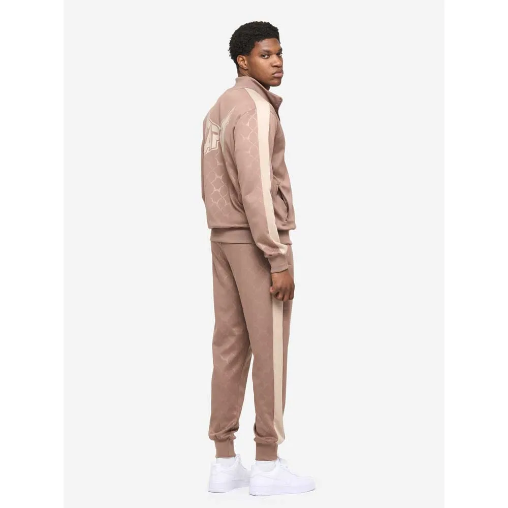 Tracksuit with contrasting details such as 3D rubber badges and contrasting inserts on the shoulders, sleeves and trouser legs. There are zip pockets on both the jacket and trousers. The entire fabric has been embossed so that the Tapout brand logo is visible everywhere. The back is adorned with a large print.