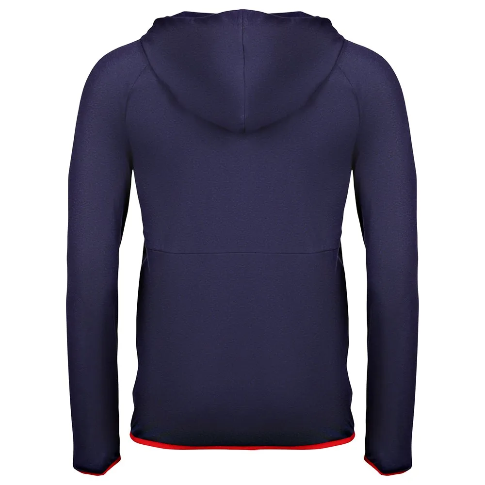 O tecido mesclado de secagem rápida mantém você confortável, enquanto o capuz não removível fornece cobertura extra.