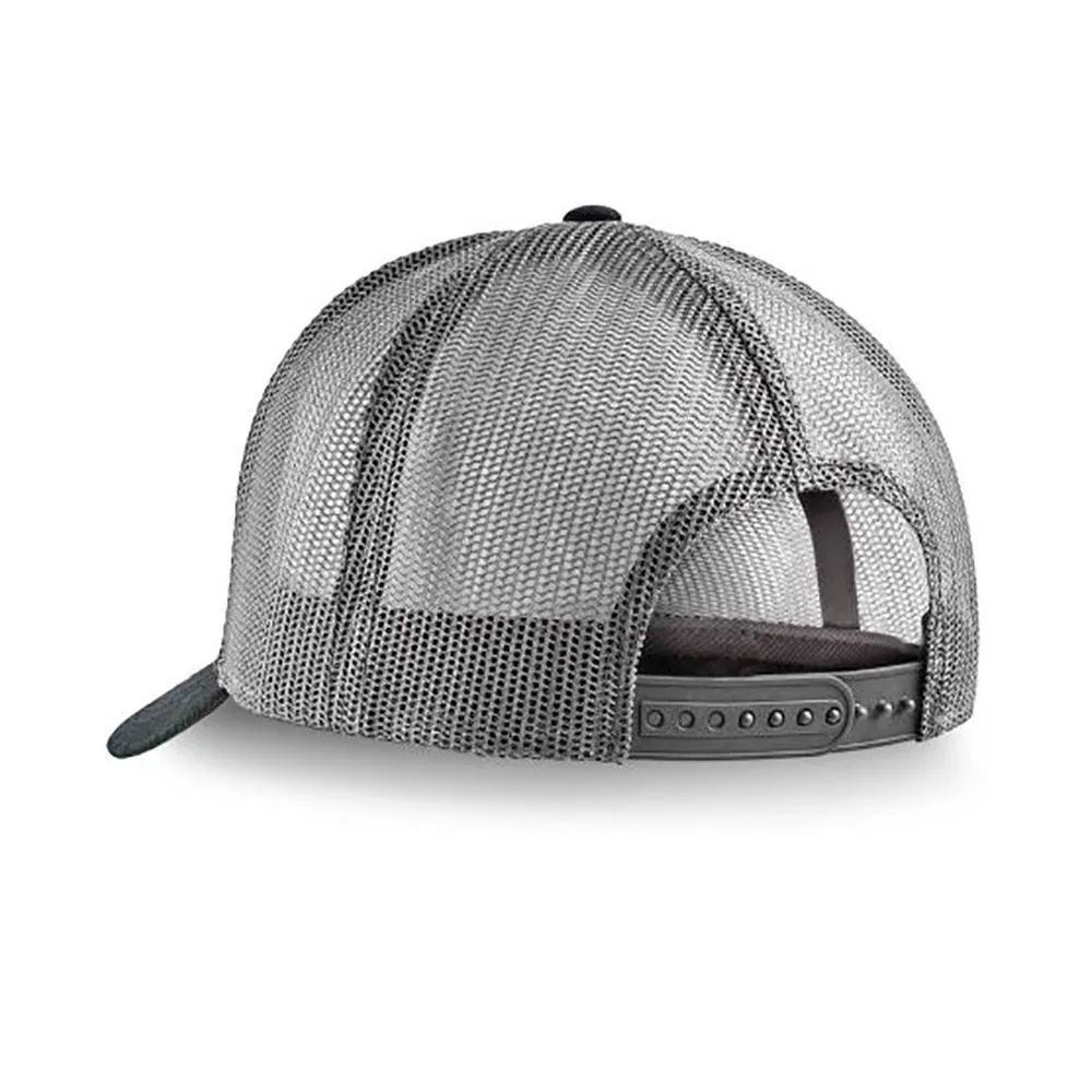 O boné possui velcro na frente para anexar diferentes patches e também fechamento regulável na parte de trás.