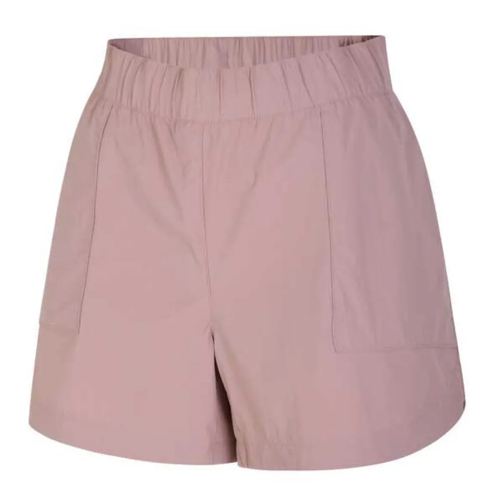 The Rapport shorts para mulheres. Estes shorts com cintura elástica oferecem um ajuste perfeito e têm 2 bolsos laterais abertos e uma bainha curva com fendas laterais. Ideal para caminhadas no verão.