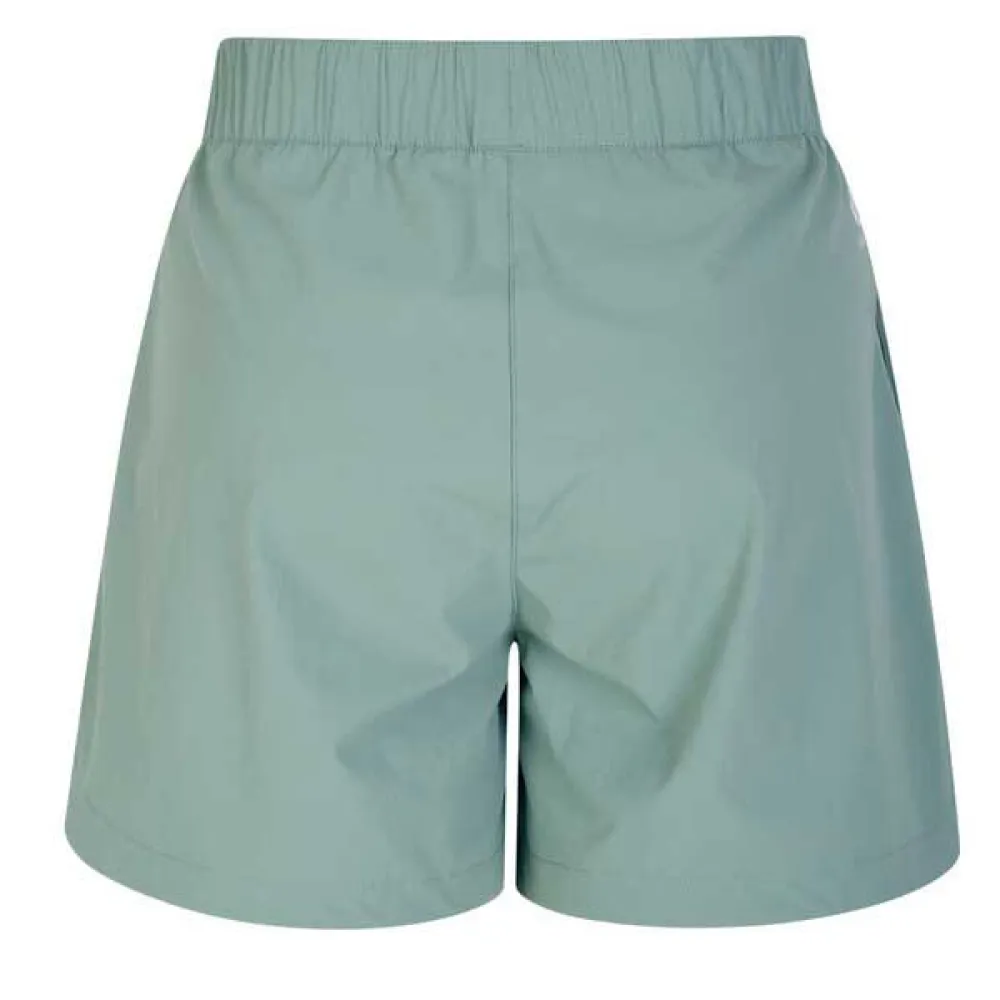 The Rapport shorts para mulheres. Estes shorts com cintura elástica oferecem um ajuste perfeito e têm 2 bolsos laterais abertos e uma bainha curva com fendas laterais. Ideal para caminhadas no verão.
