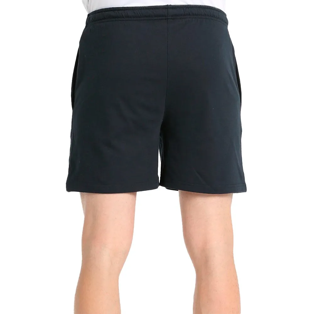 Estes calções tipo bermuda com uma cintura elástica personalizada com cordão interno, bolsos laterais e um pequeno gráfico, feitos de malha simples de algodão e poliéster.