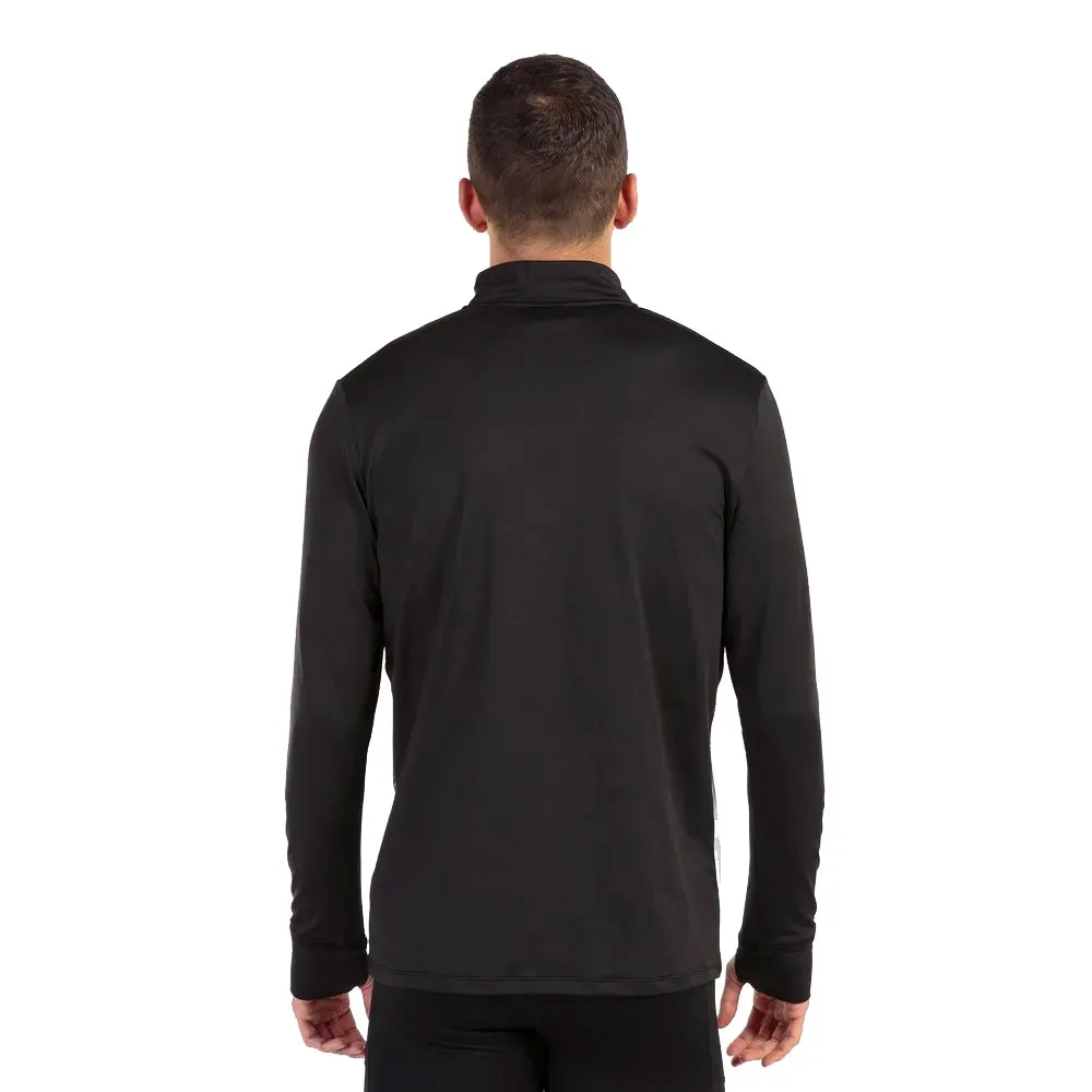 Camisola de gola alta com meio-zíper funcional para cobertura e ventilação ajustáveis.