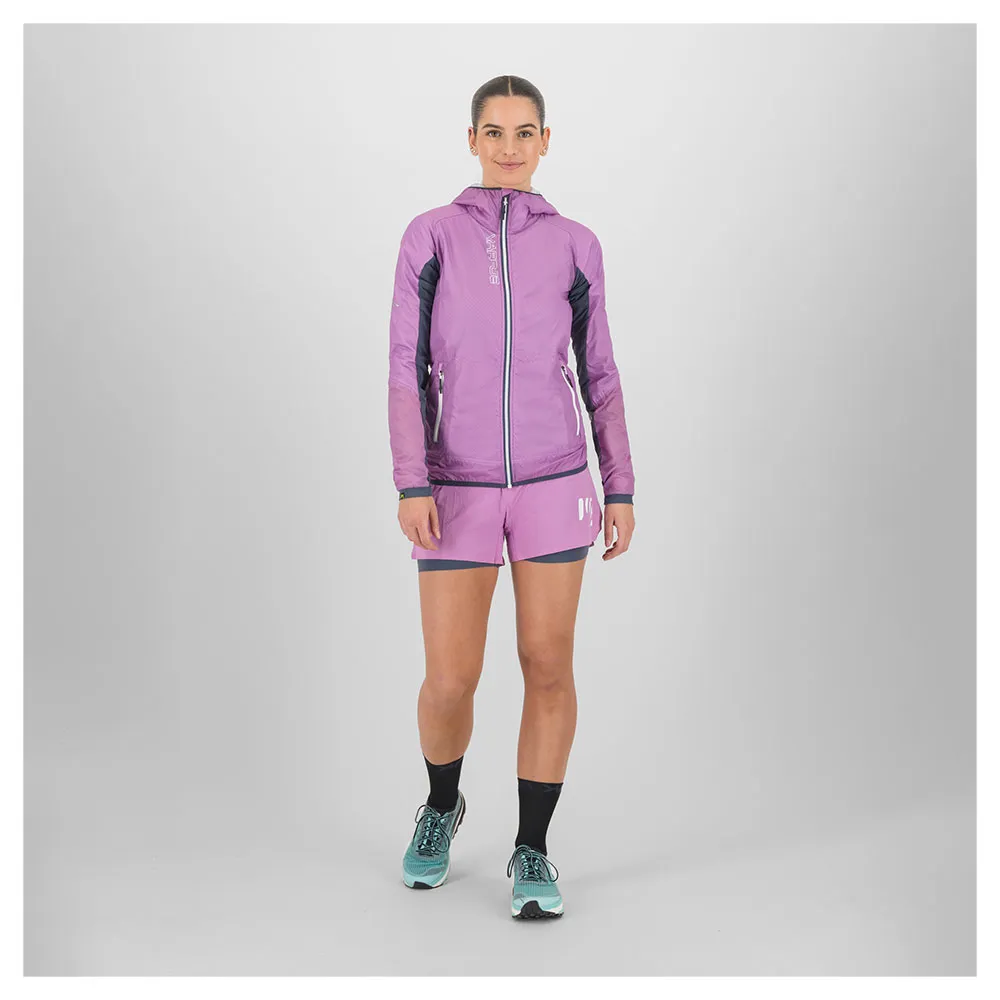 Leve, quente, fácil de guardar e rápida de vestir, a Jaqueta Lavaredo Evo W foi projetada para trail running e caminhadas rápidas.
