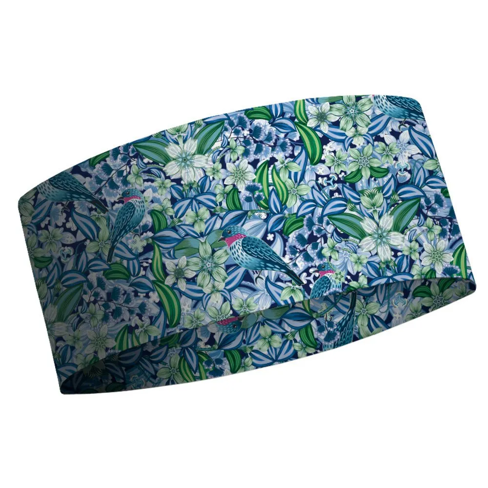 Fita de cabeça de camada dupla impressa com tecnologia Coolmax All Season, design original de Catalina Estrada.