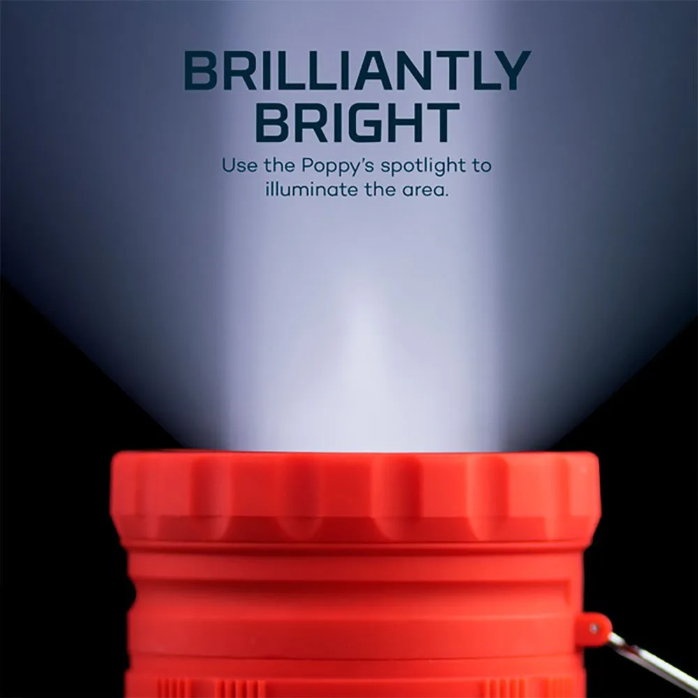 Poppy é a luz perfeita para manter em casa em caso de falta de energia ou outra emergência. Com uma combinação de lanterna LED C•O•B de 300 lúmens e foco de luz LED brilhante, nossos especialistas recomendam manter um sob cada pia em sua casa. Ter uma luz potente e versátil como a Poppy, em caso de desastre, pode ser fundamental para a segurança da sua família. Com um corpo emborrachado resistente a impactos, Poppy é robusto e macio ao toque. Poppy muda facilmente de foco para lanterna com apenas um deslize de sua parte superior, revelando uma lanterna completa de 360º C•O•B. A alça foi projetada para se ajustar facilmente para servir convenientemente a ambos os modos de luz.
