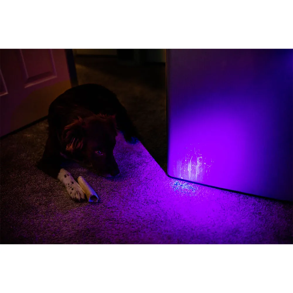 Os comprimentos de onda de amplo espectro fornecem uma combinação de iluminação e fluorescência que é ideal para tarefas de curto alcance, como detecção de urina de animais de estimação, inspeção de vazamentos de automóveis com corantes UV, detecção de pragas como escorpiões, inspeções de limpeza e autenticação de moeda.