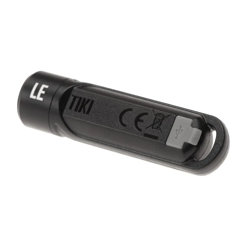Este dispositivo utiliza uma bateria de íon de lítio embutida que é carregada via porta micro-USB. A fonte de luz da lanterna é um LED OSRAM P8, emitindo até 300 lúmens. Funciona por até 40 horas e tem um alcance máximo de operação de 70 metros. A Nitecore TIKI LE possui um LED vermelho e azul além do LED principal.
