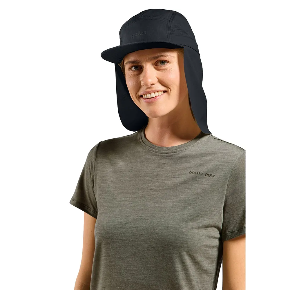 Feito para viagens de acampamento, caminhadas em trilhas expostas e corridas rápidas no auge do dia, o boné de cinco painéis Performance Light da Odlo foi cuidadosamente confeccionado com uma mistura parcialmente reciclada de poliéster e elastano para manter o sol e o suor longe do seu rosto e pescoço.