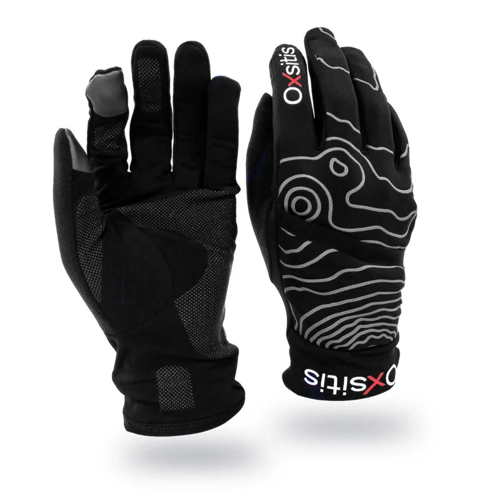 O material em poliéster na parte superior dos polegares permite limpar as partes do rosto danificadas pelo frio. As riscas refletivas proporcionam uma visibilidade máxima e tornam a corrida segura. A pega de silicone na palma da mão e nos dedos proporciona uma melhor aderência.