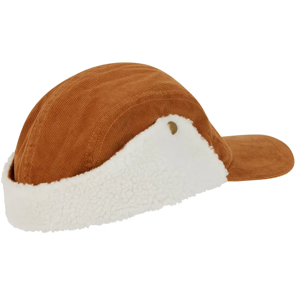 O boné totalmente forrado, completo com uma aba que vai de orelha a orelha ao redor da parte de trás do boné, fornece calor e proteção contra o clima frio.