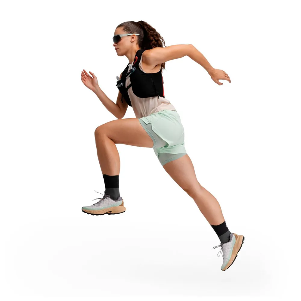 - Shorts externos folgados feitos de tecido leve, elástico e resistente