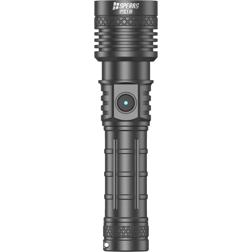 Foco de terra Speras PZ18 com feixe ajustável, com 1600 lumens de potência e alcance de 420 metros, perfeito para ser usado como foco principal em condições de pouca luz.