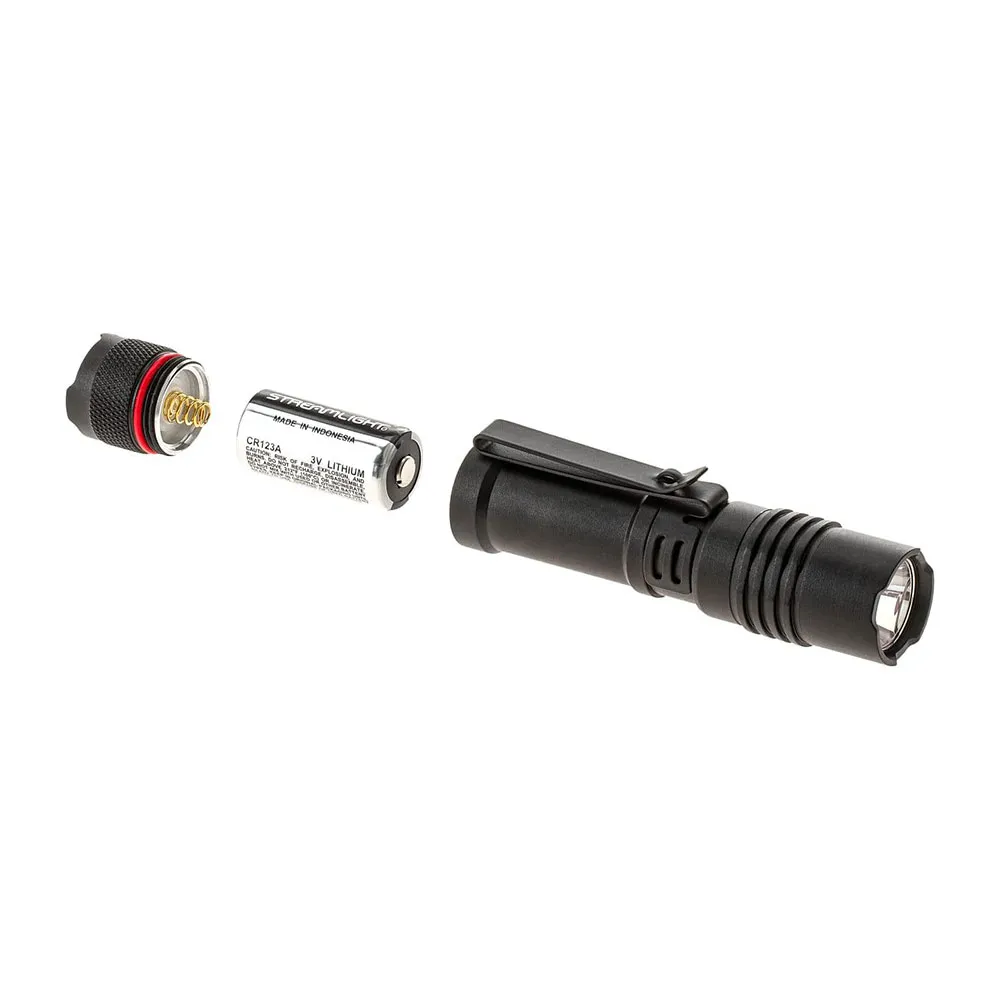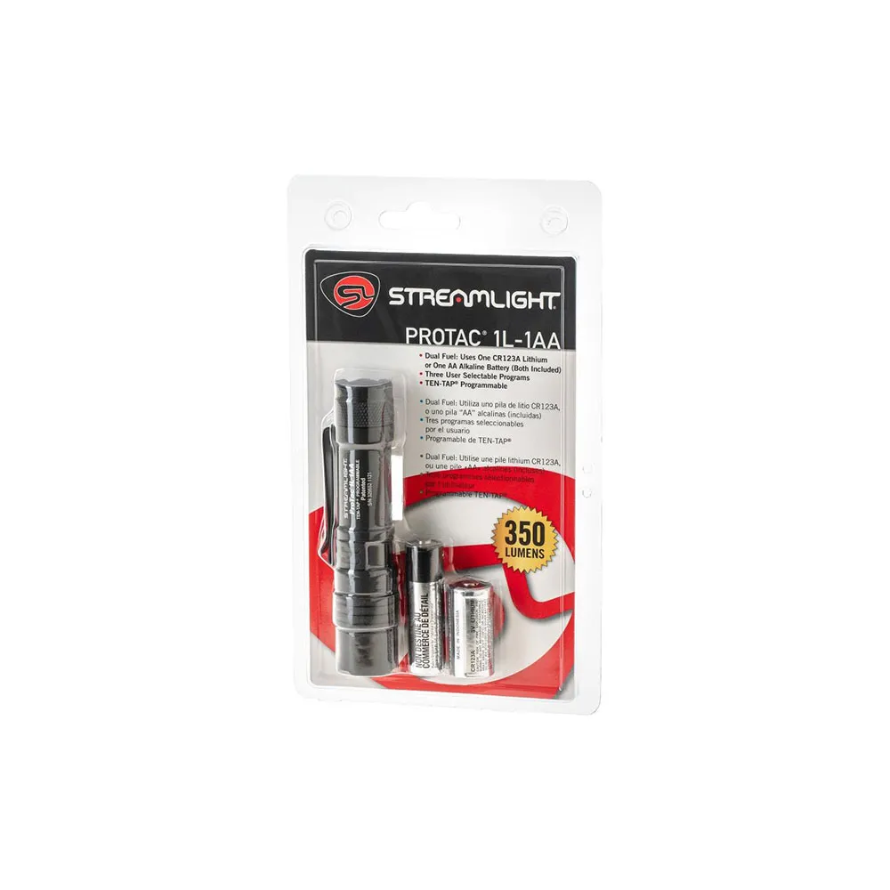 Uma única bateria AA alcalina/lítio ou uma bateria CR123A recarregável alimenta a lanterna. Um clipe de bolso adicional mantém a lanterna no bolso. Graças ao tamanho subcompacto e ao potente LED, a ProTac 1L é uma escolha perfeita para usos e aplicações EDC.