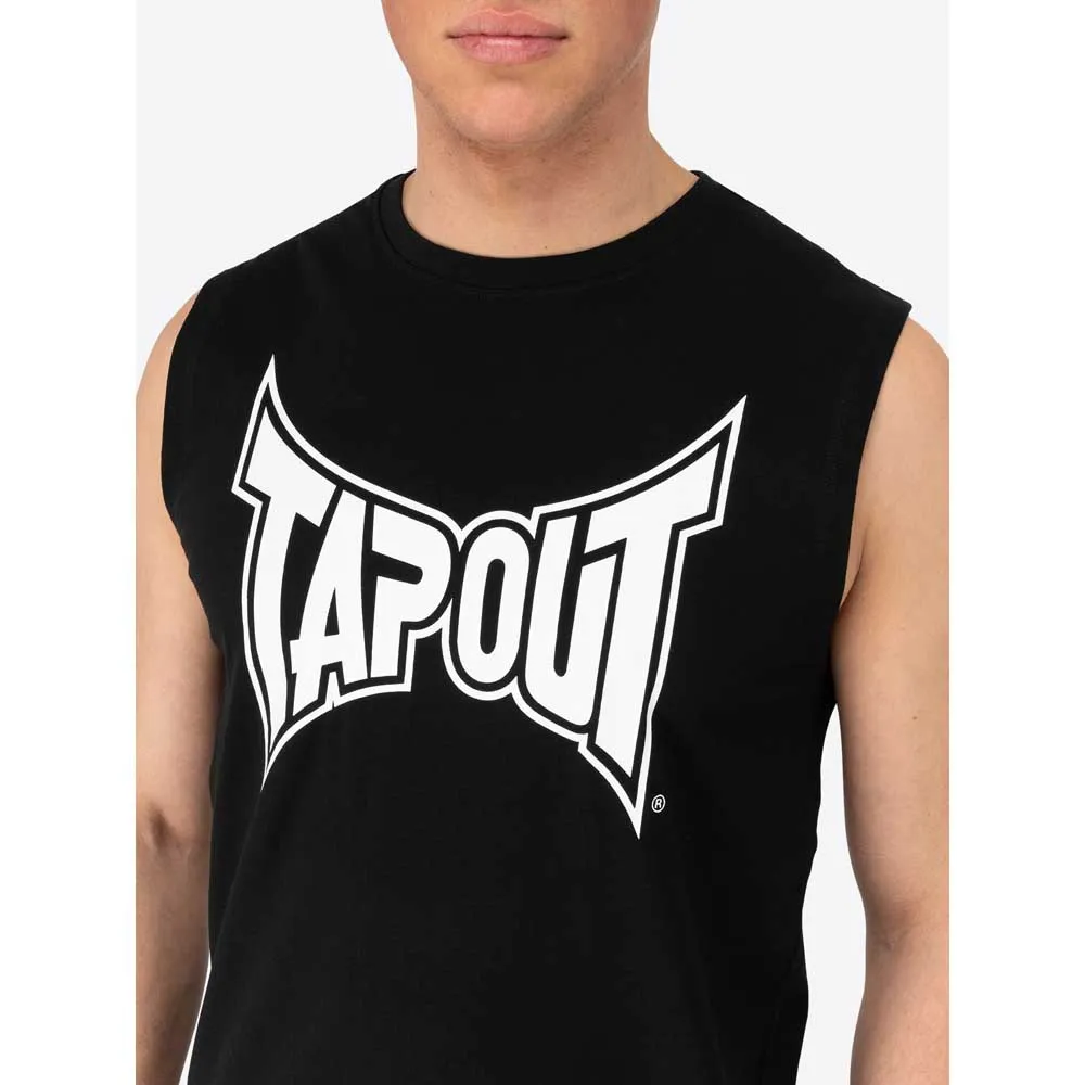The set consists of a sleeveless t-shirt and shorts. On the front of the t-shirt, the Tapout lettering is printed in a large contrasting colour. The neckline is worked with an elastic grosgrain. The pants have an elastic waistband and can be additionally adjusted with a drawstring. In addition, the pants have two side pockets at the front, a patch pocket at the back and the Tapout lettering is also printed on the left leg.