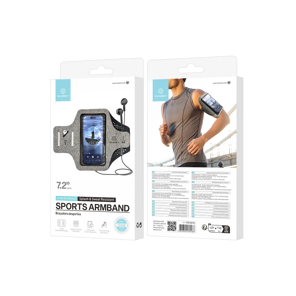 Descricao do producto:Techancy Mobile Phone Arm Bag Grey Foi concebida para resolver o problema dos desportos ao ar livre ou das deslocações diárias, como transportar telemóveis, chaves, cartões, etc.