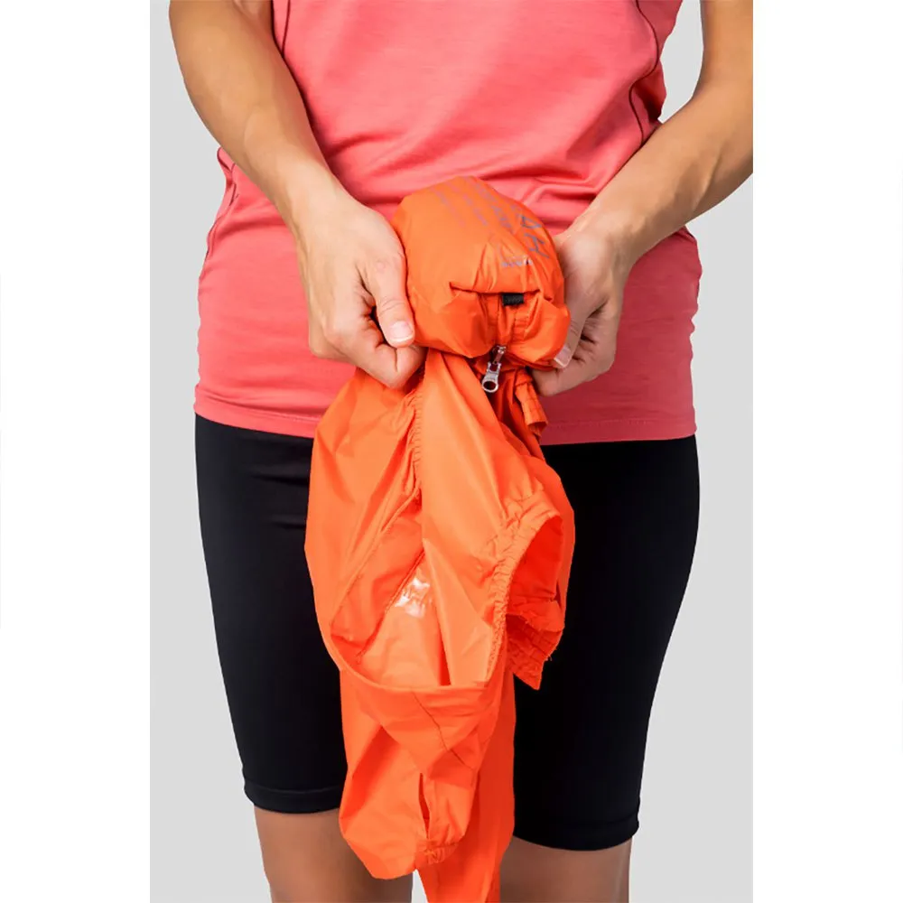 Den är gjord av ett vatten- och vindtätt material och kan enkelt packas ner i sin egen ficka.