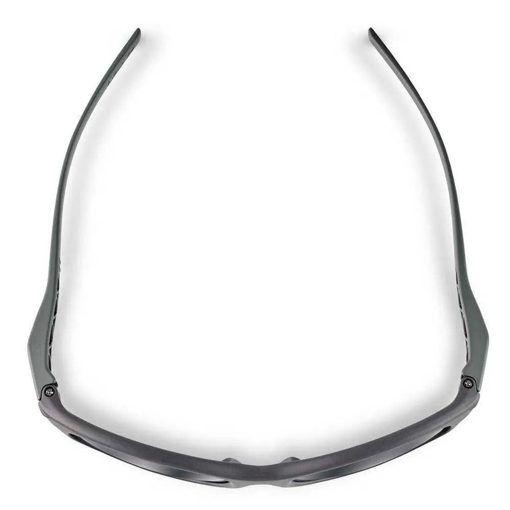 Den injicerade plastramen garanterar en hållbarhet som står sig över tid, medan den wraparound-formade formen ger bästa möjliga solskydd. Bågarna är böjda för att säkerställa en utmärkt passform. För att lägga till en touch av kul är de också dekorerade med geometriska mönster på deras inre kanter. En modell med en mycket sportig anda, som bevisar att det inte finns någon åldersgräns för stil.