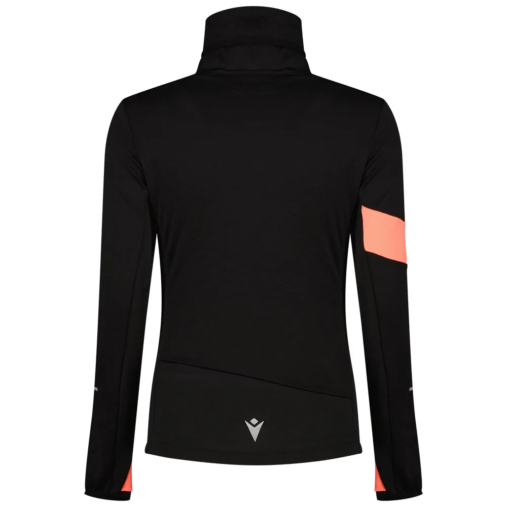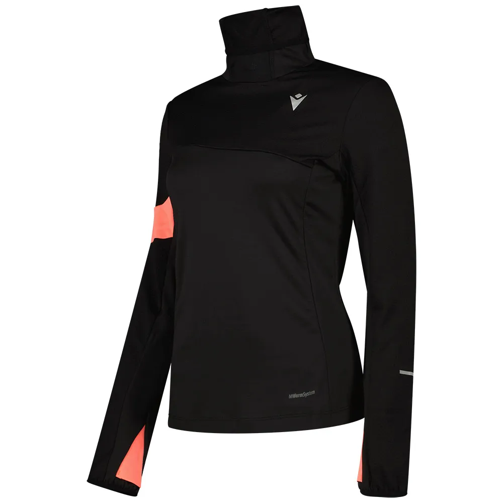 Den genomtänkta designen av denna damtröja prioriterar funktionalitet och komfort. Den eleganta höga kragen erbjuder extra täckning och skydd mot väder och vind, och skyddar dig från svala vindar utan att vara lika skrymmande som en huva. Denna konstruktion utan huva och utan dragkedja skapar en strömlinjeformad silhuett som minimerar distraktioner och förhindrar skav under dynamiska rörelser. För ökad komfort och en säker passform är de långa ärmarna avslutade med integrerade tumhål, som håller ärmarna på plats och ger lite extra värme för dina händer under kallare dagar. Reflekterande detaljer är strategiskt placerade för att förbättra din synlighet under tidiga morgon- eller kvällslöpningar, vilket ger ett avgörande säkerhetsmoment till din träningsrutin. Dess mångsidiga och moderna estetik gör den till ett stilfullt val inte bara för sport, utan för din aktiva livsstil.